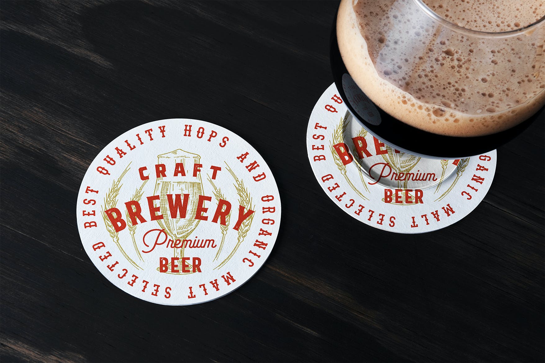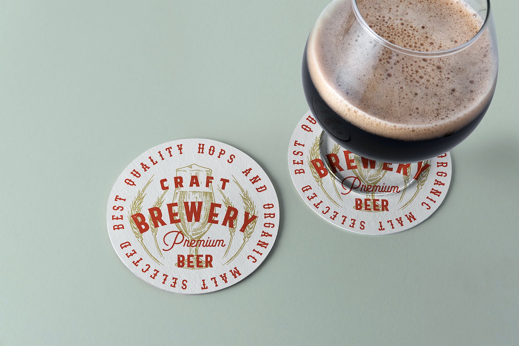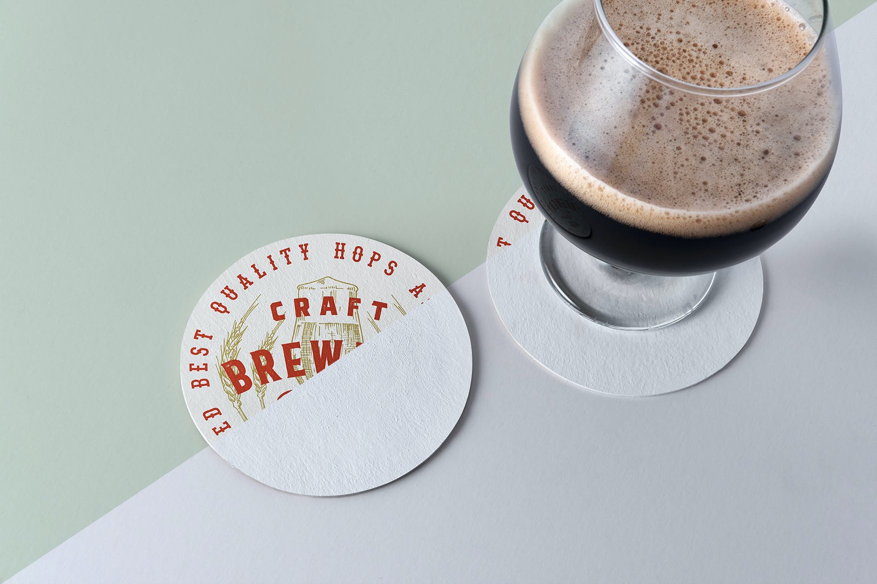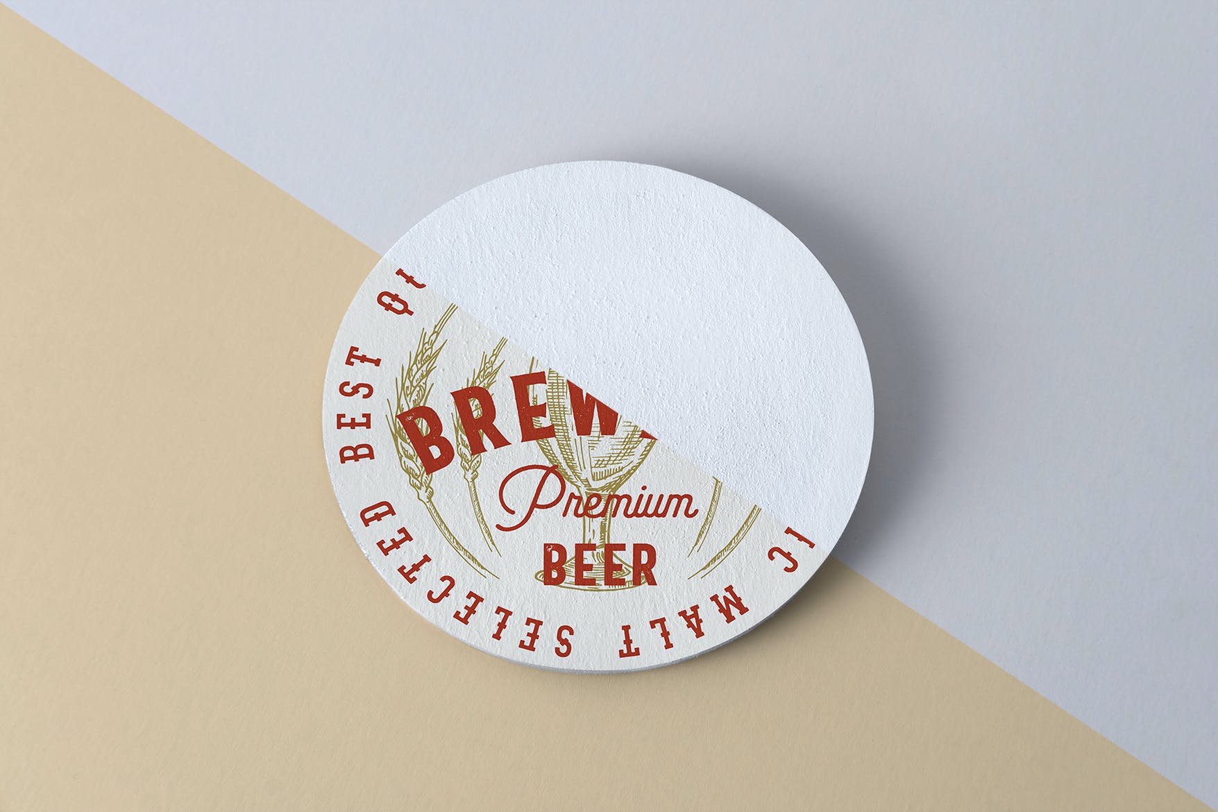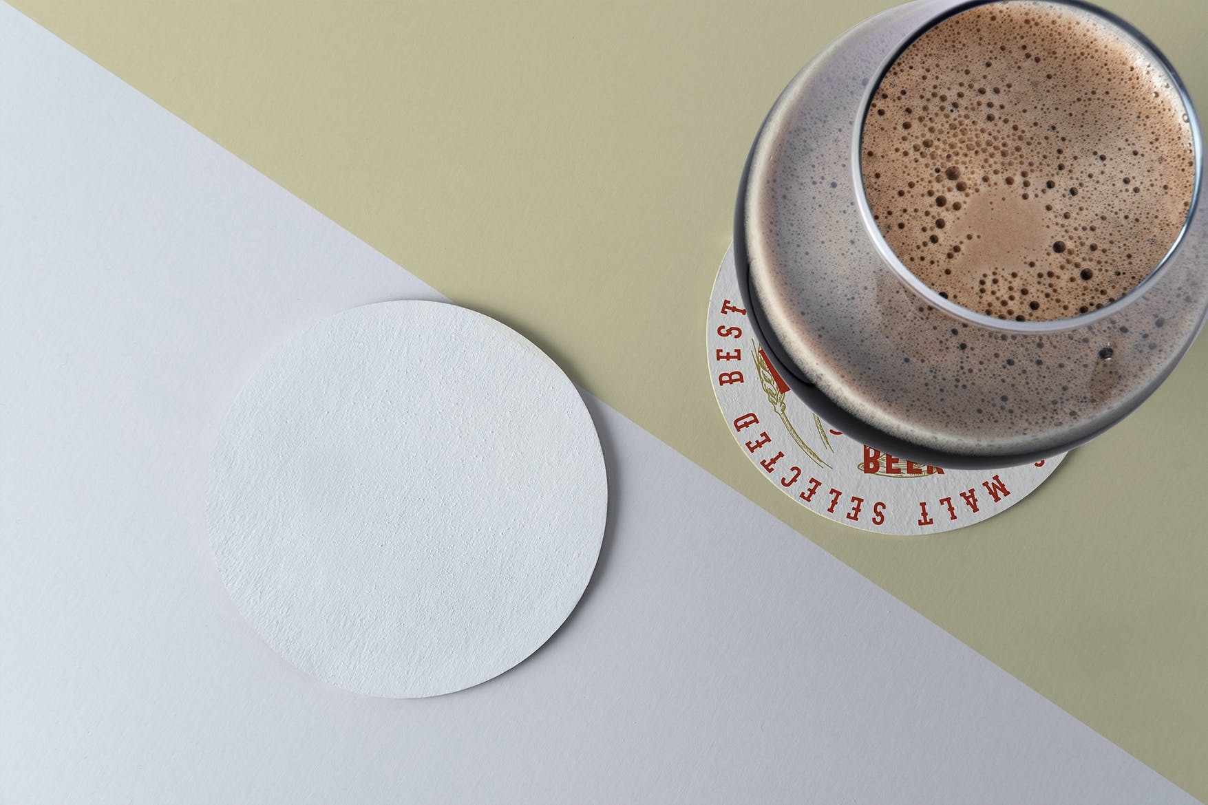 饮料杯垫餐饮品牌设计样机素材,放置你自己的设计,标志,插图,改变背景颜色等!所有背景都包括在内,定制非常简单,智能对象系统。