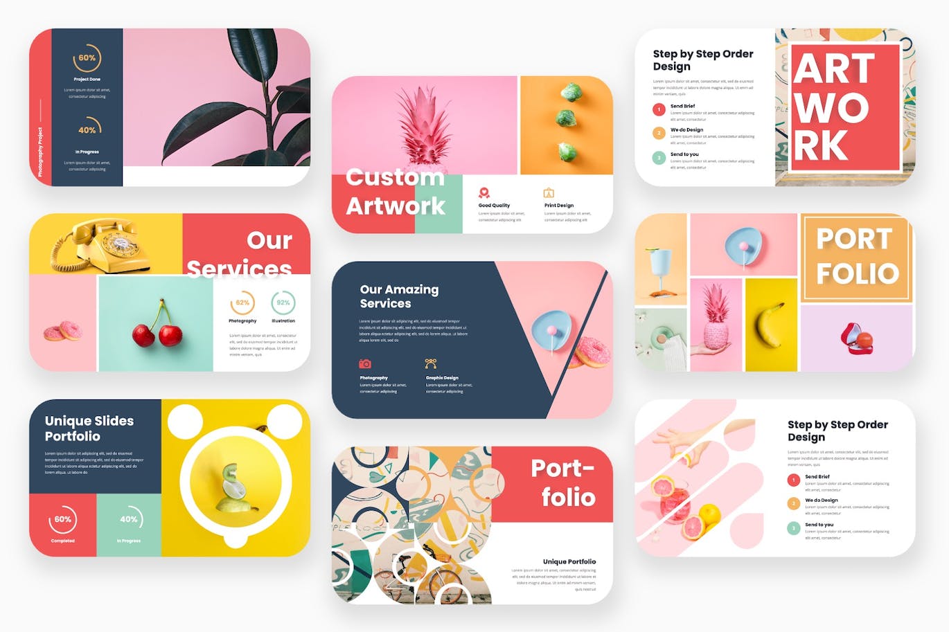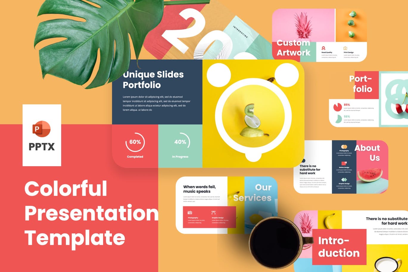 彩色马卡龙色系杂志风PPT模板,可用于任何类型的演示:商业、投资组合、企业、音高甲板、彩色、流行艺术、涂鸦、一种颜色,也可用于定制生产。