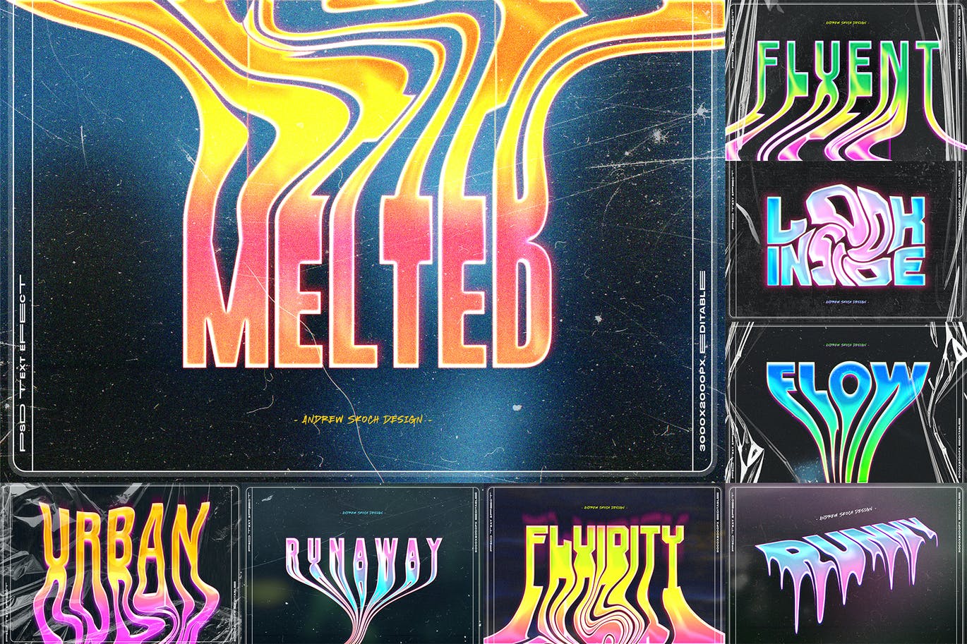 这次老不湿分享的是,高品质的液体流体文字融化效果图层样式-psd, 为您的社交媒体项目、海报、传单、Instagram 故事、Facebook 帖子、YouTube 封面、CD 封面提供酷炫的现代风格。从任何常规文本制作液体融化效果。很酷的老派风格,鲜艳的色彩,垃圾纹理,包裹覆盖。易于使用的 Photoshop 模板。只需编辑智能对象内的文本并保存即可。