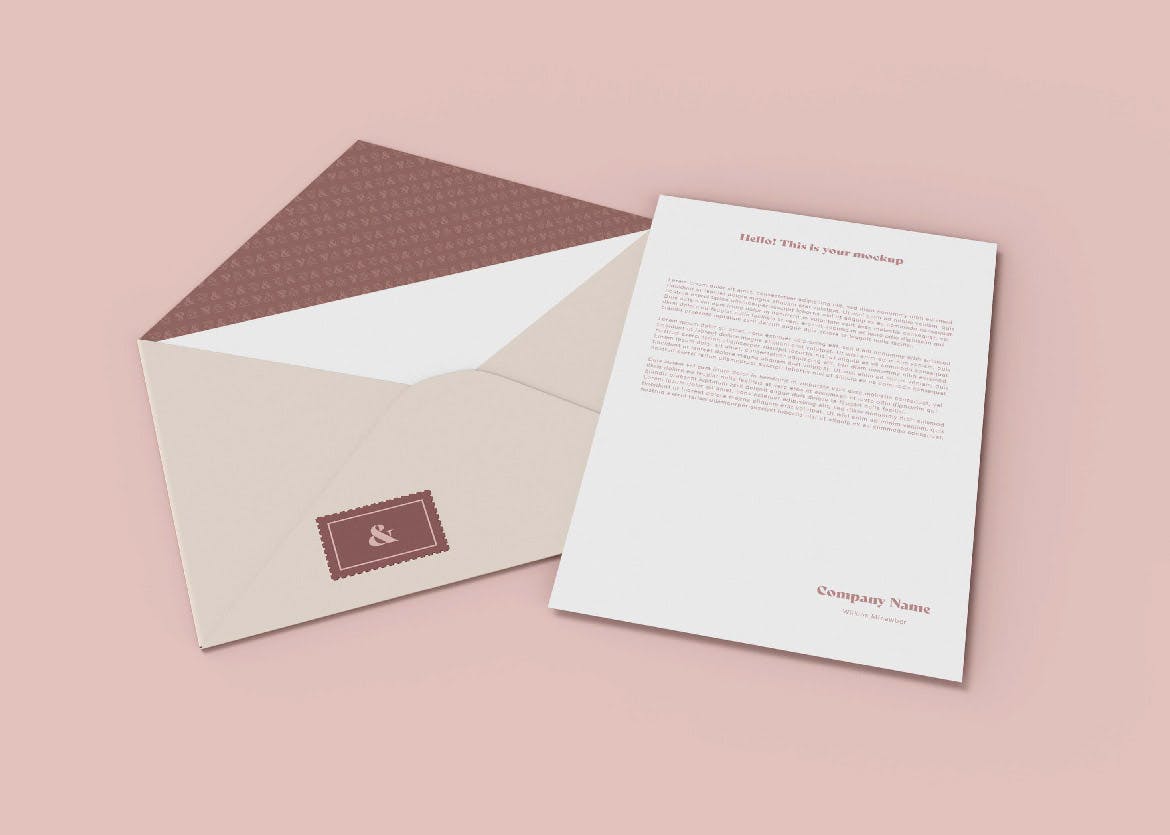 信封信纸VI设计样机模板素材,样机上有一个智能对象可以帮助您调整设计,拖放即可。它的使用非常简单,使用纯色图层,易于重新着色。高分辨率(300 dpi),下载文件中不包含示例设计。