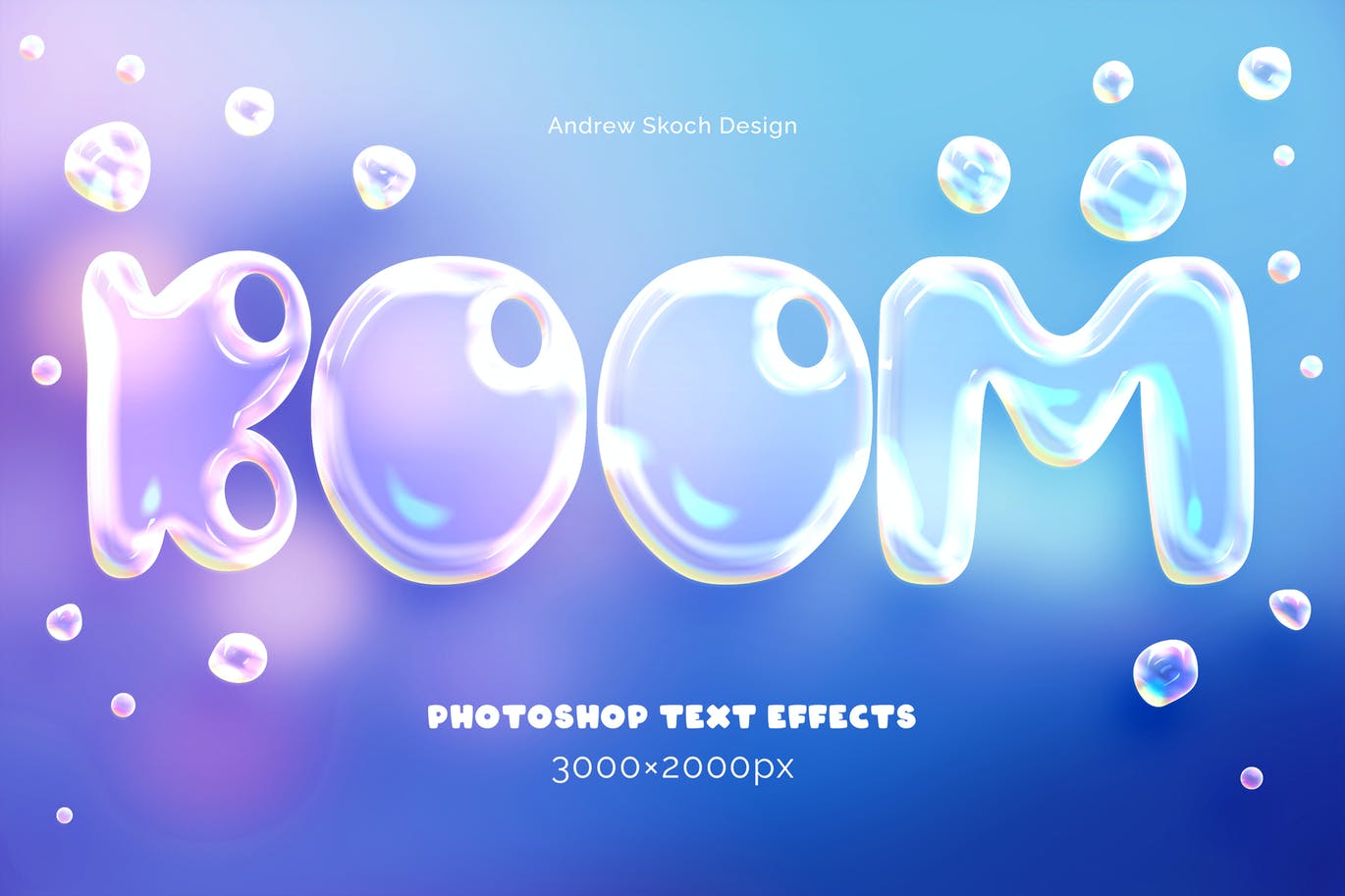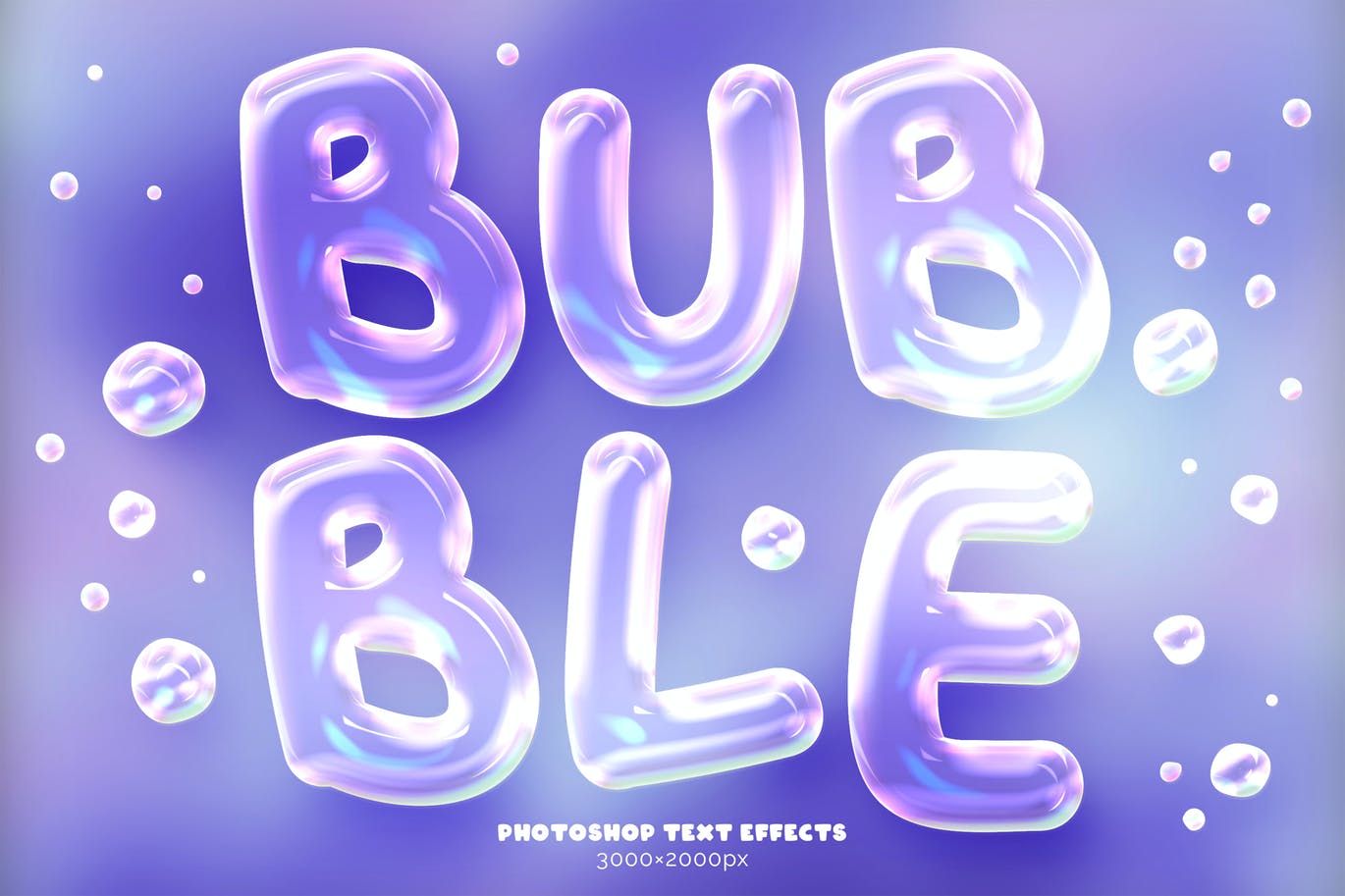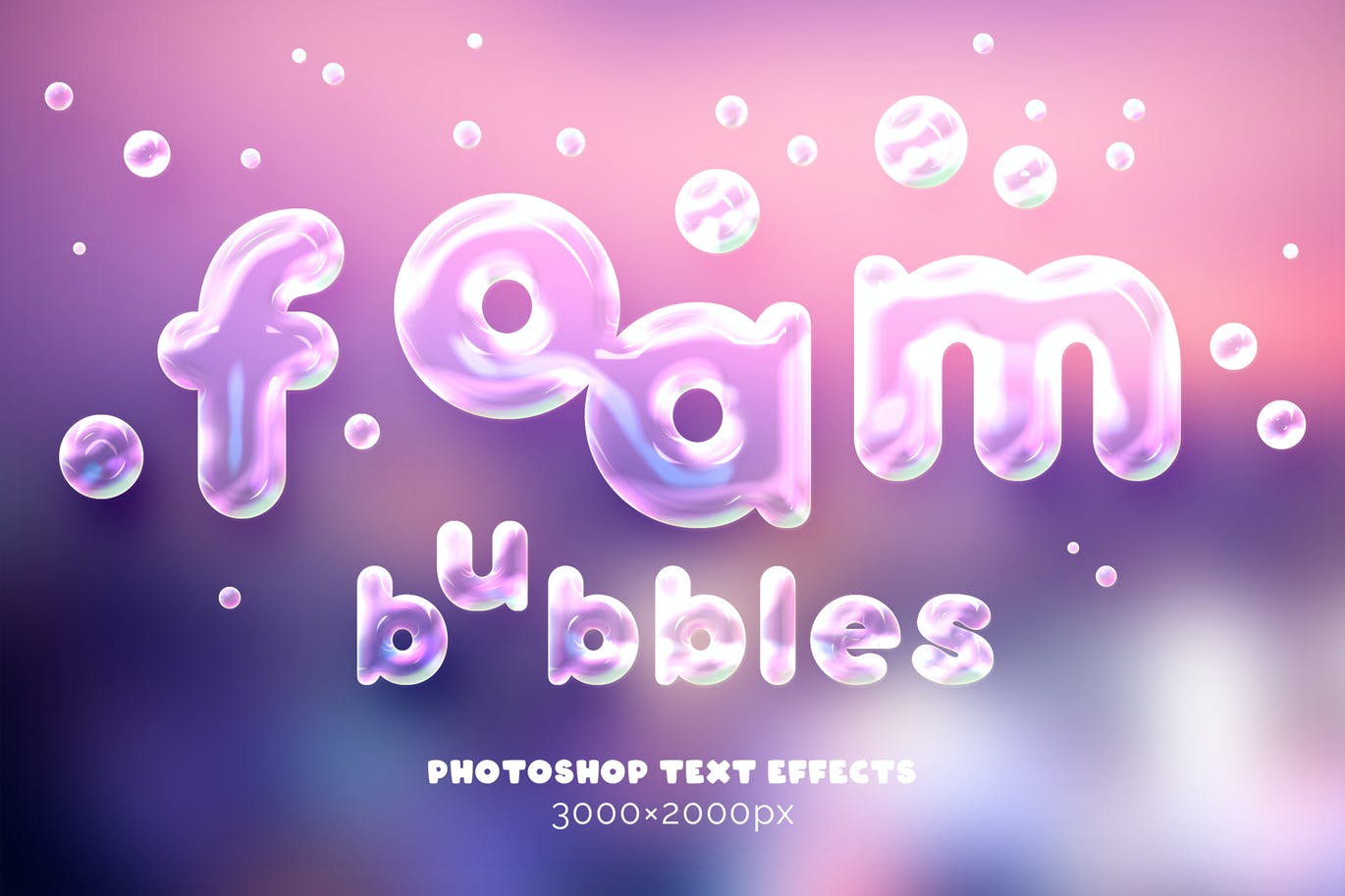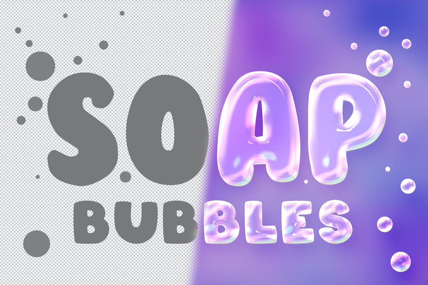 肥皂泡的真实效果只需要几秒钟,适合你的文本、标志、形状的魔术泡沫!易于使用的Photoshop模型。只需编辑智能对象内的文本并保存。