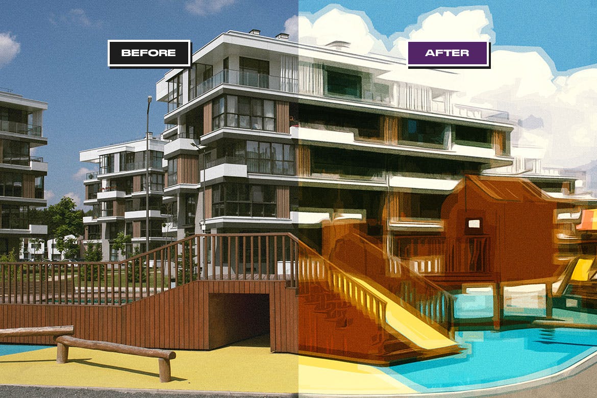 这次分享的是,抽象绚丽的数码照片艺术效果图层样式-PSD,使用 Photoshop 快速轻松地将您的图像转换为数字水彩素描!只需将您的作品导入智能对象。