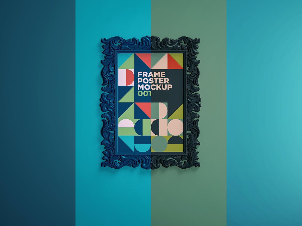 这个装饰海报框架样机素材可以帮助你漂亮、时尚地将你的作品提交给客户,并且在你的网站或作品集上看起来很漂亮。