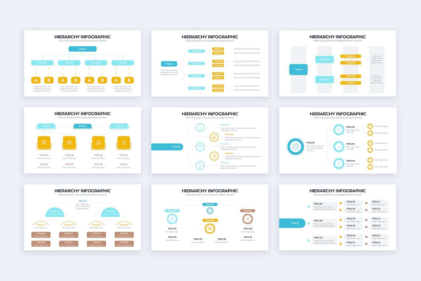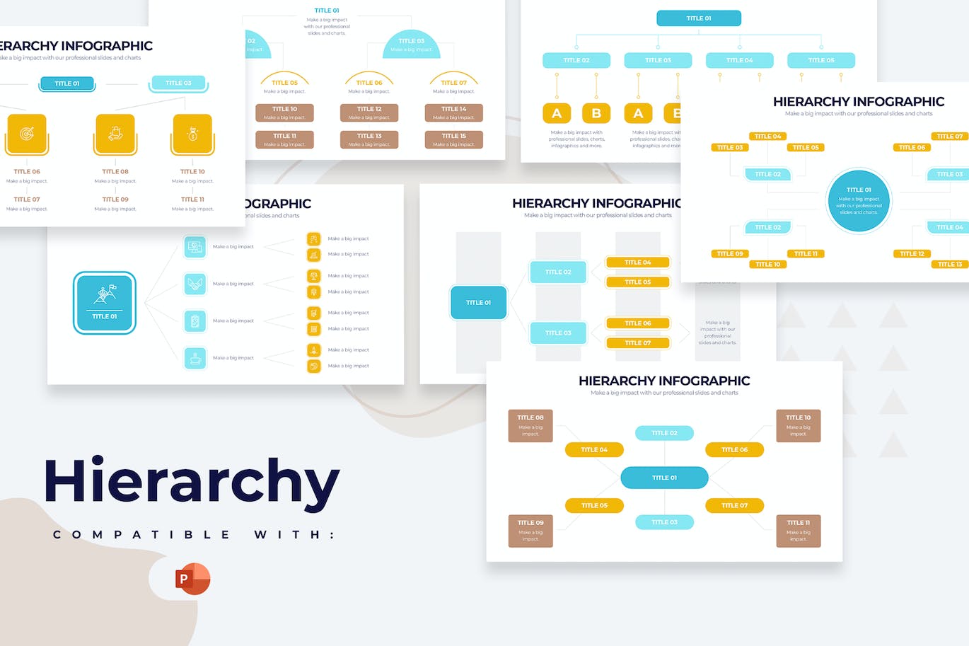 与Powerpoint兼容的Modern Hierarchy信息图形模板。业务演示幻灯片易于编辑。