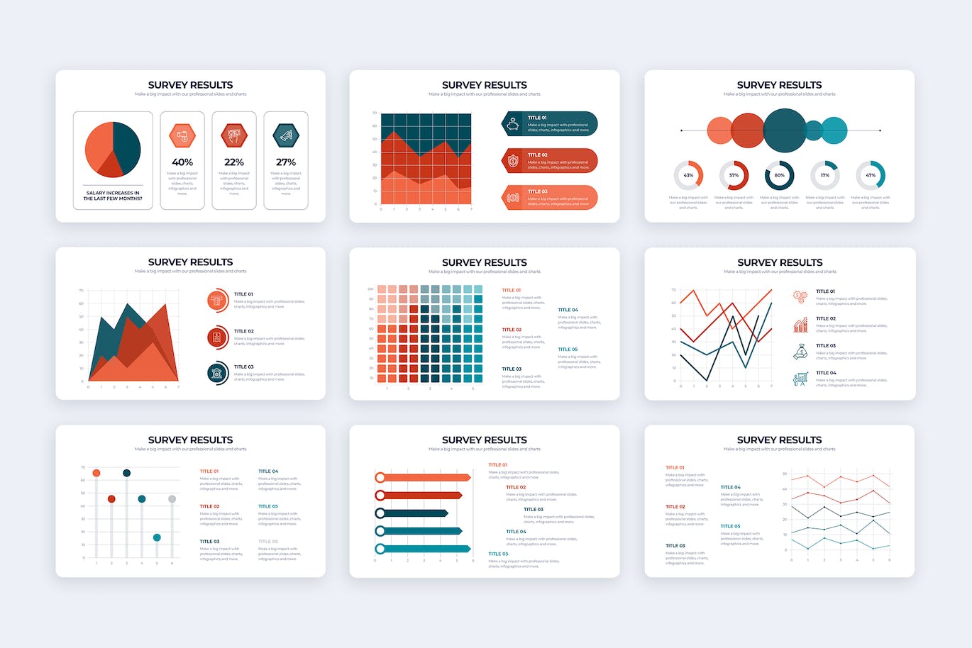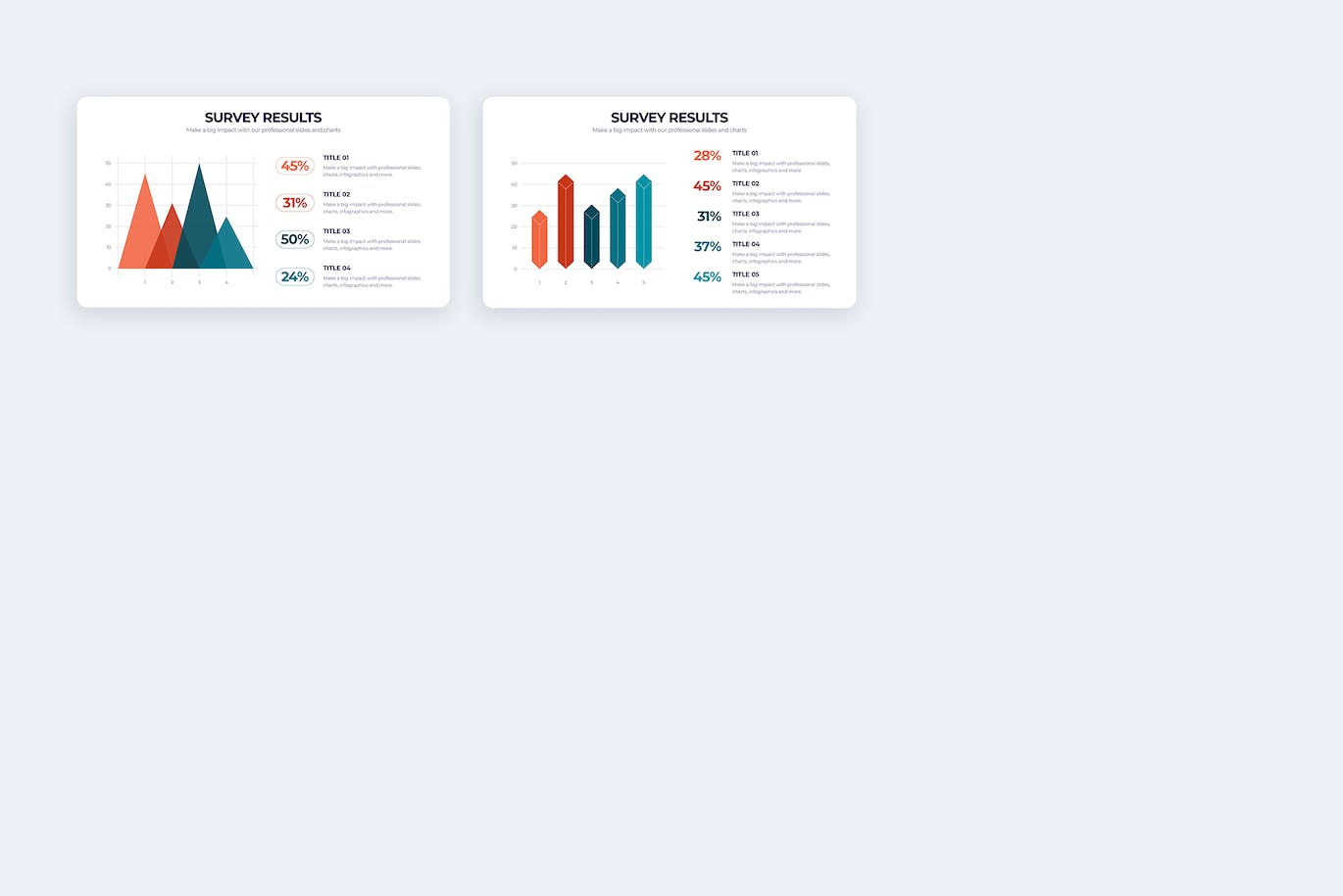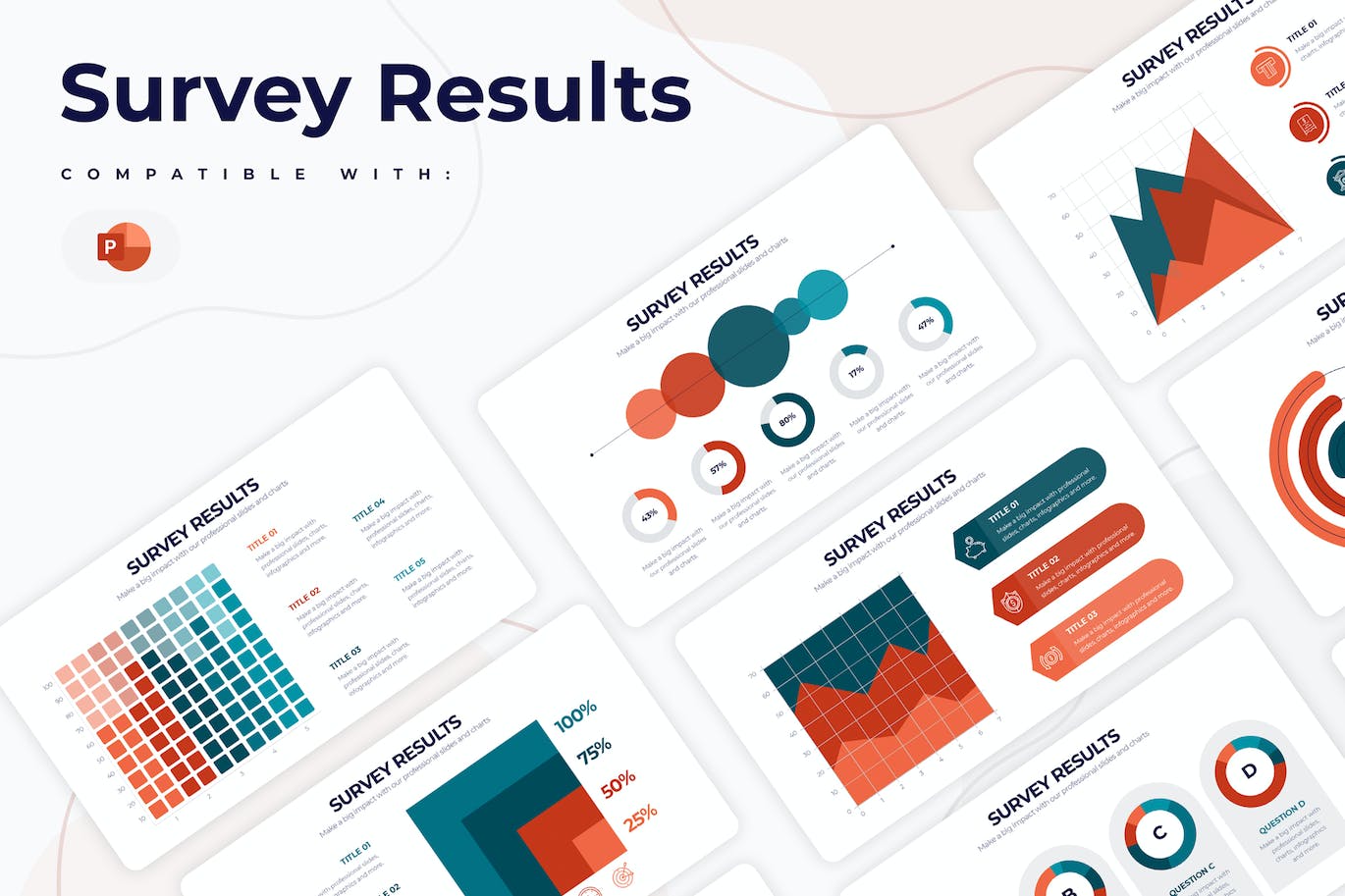 与Powerpoint兼容的现代调查结果信息图形模板。业务演示幻灯片易于编辑。