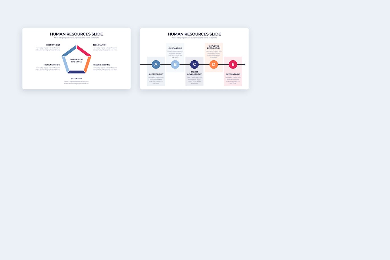 与Powerpoint兼容的现代人力资源信息图形模板。业务演示幻灯片易于编辑。