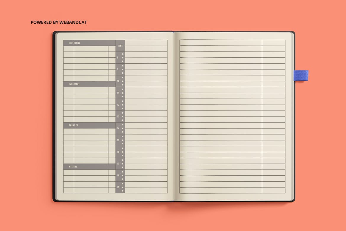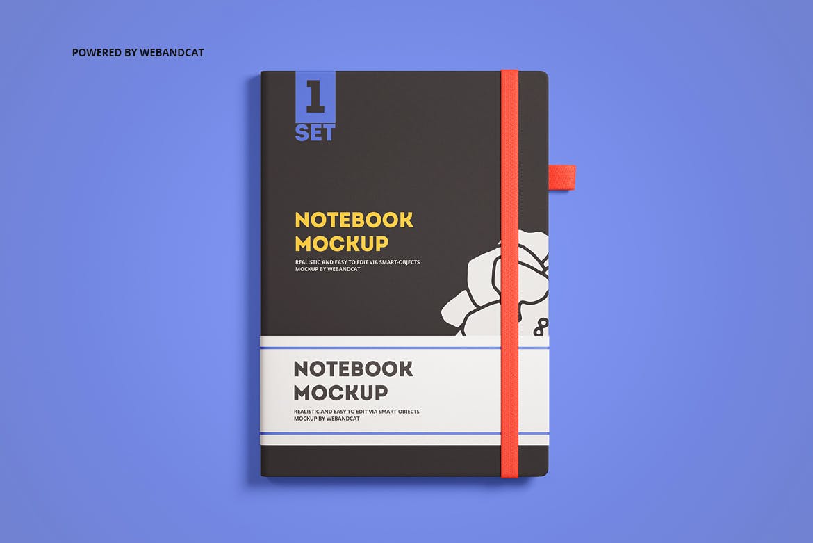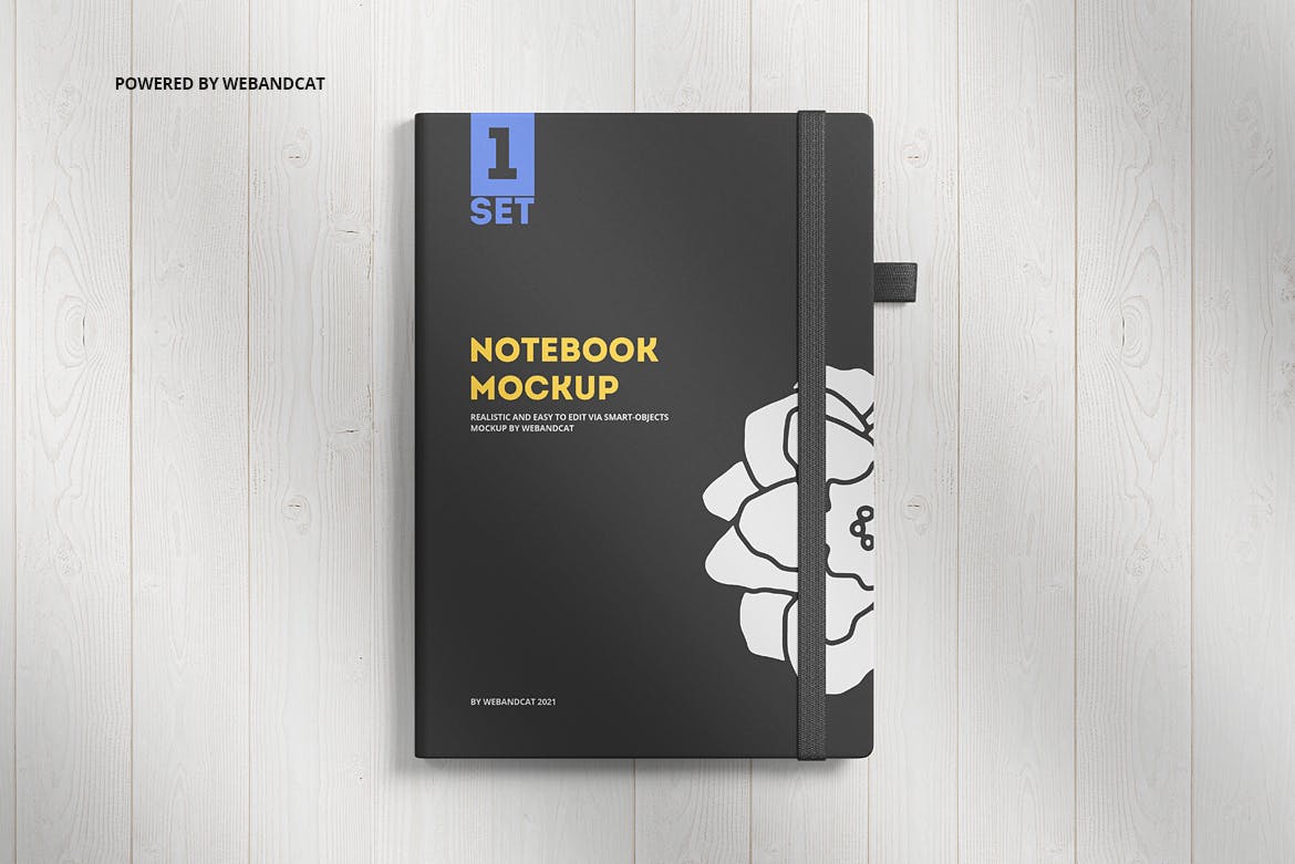 高品质且易于编辑的记事本封面设计俯视图样机,将让您以专业的方式展示您的平面设计。只需将您的设计放在智能对象中,保存更改即可获得完美的结果。