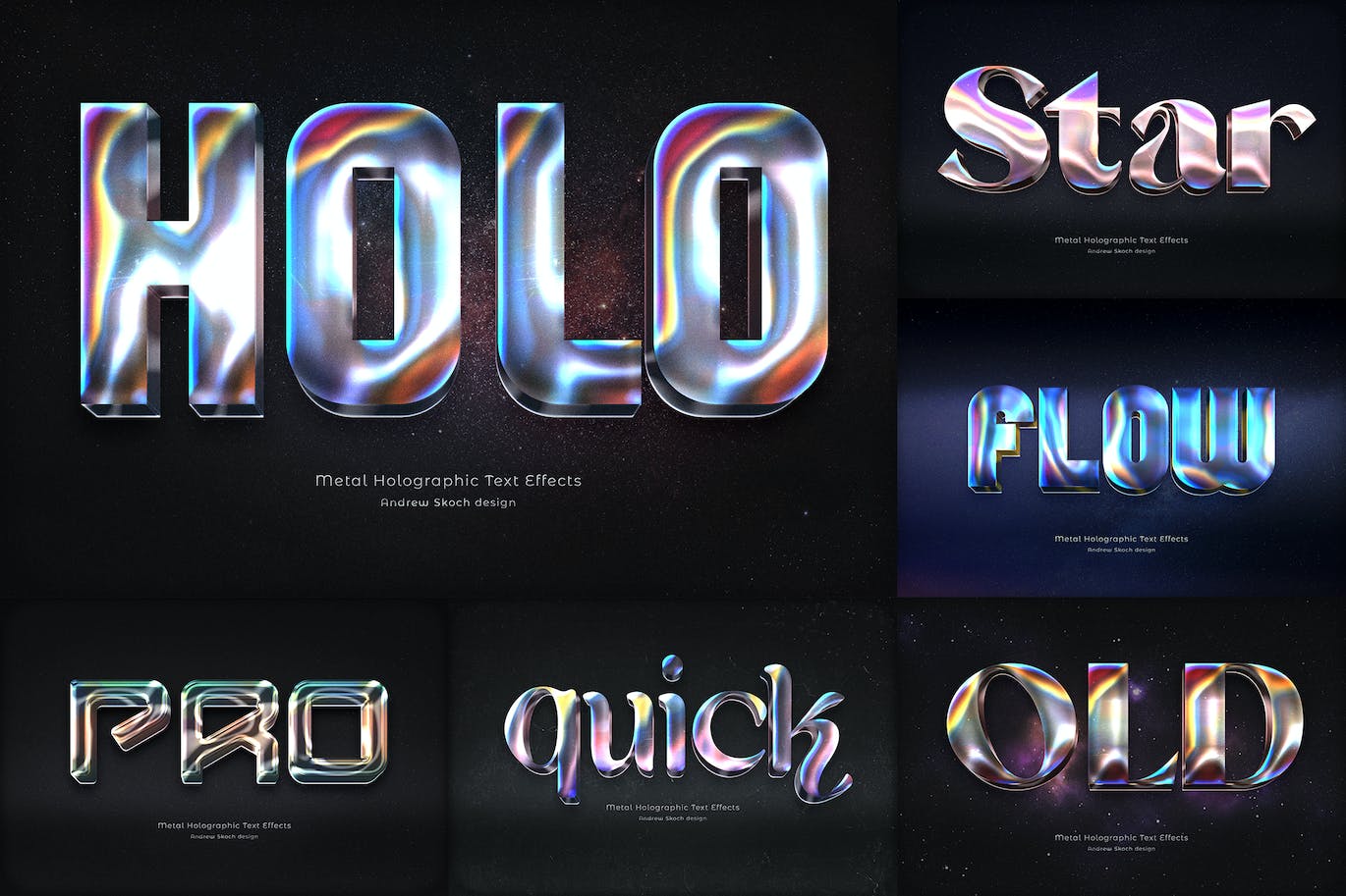 这次老不湿分享的是,时尚高端绚丽的全息渐变3D立体文字设计图层样式大集合-PSD,您只需要将您的设计放入智能对象中。仅此而已) 创建出色的海报或传单、Facebook 封面、YouTube 封面、网站横幅、电影标题、电影标题等。