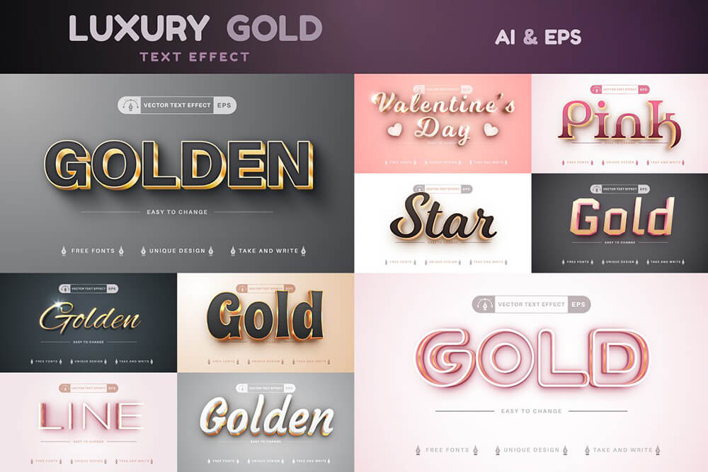 只需写下您的文字,效果就会生效!使用这款独特的“奢华黄金”来表达自己,尽情发挥创意。效果非常适合任何需要独特方便触感的项目,无论您的想象力如何!