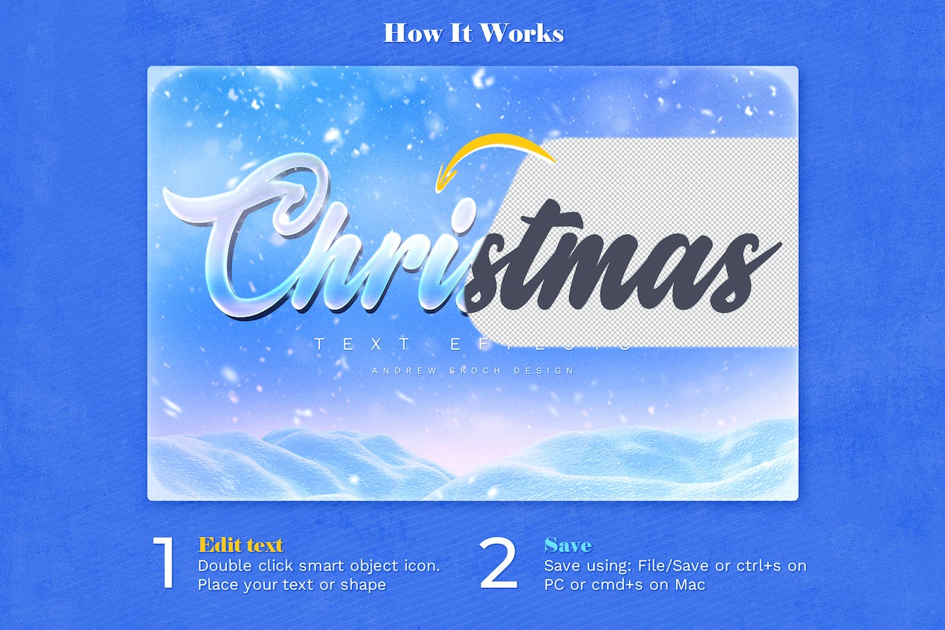 这次老不湿分享的是,时尚高端好用的新年圣诞节立体字体设计图层样式-PSD,冬天是一个美妙迷人的时光。雪花在空中盘旋。假期的美好时光!创建圣诞贺卡、YouTube 横幅、Instagram 帖子、社交媒体节日内容。编辑 PSD 模板很容易——您只需要编辑智能对象内的文本。每个模板中都有逼真的雪覆盖。