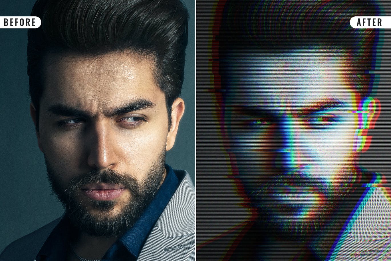 **Glitch Effect Photoshop**此动作旨在将图片转换为漫画效果\\\\