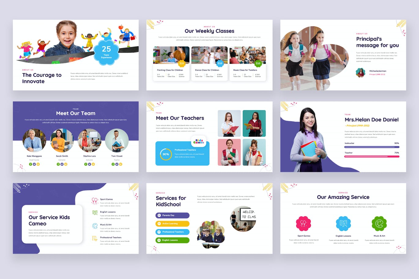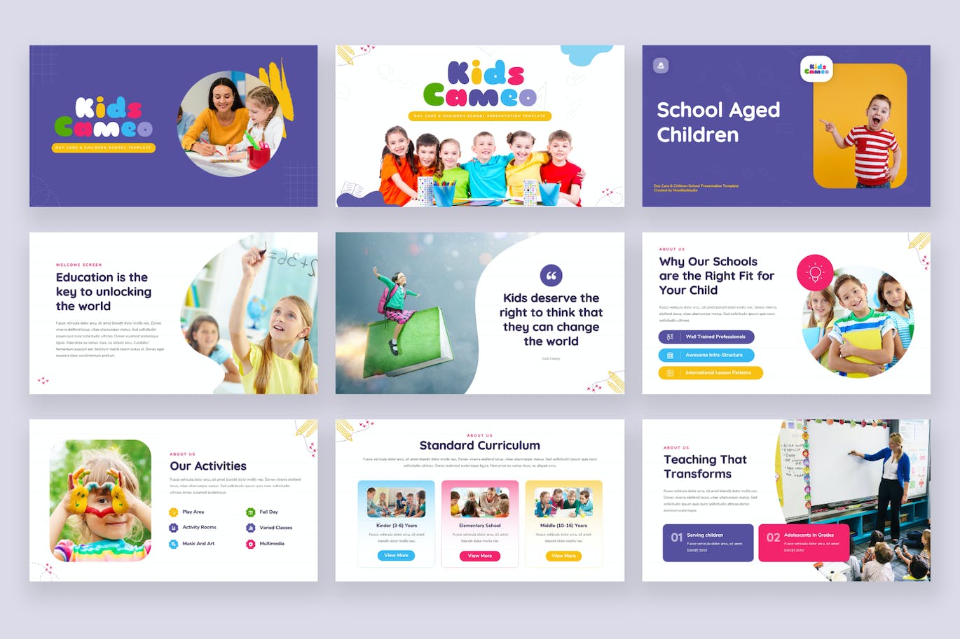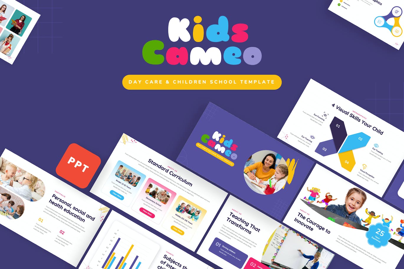 儿童客串-日托和儿童学校Powerpoint模板具有专业、超现代和独特的设计,其中每张幻灯片都充满了对细节的热爱和关注。