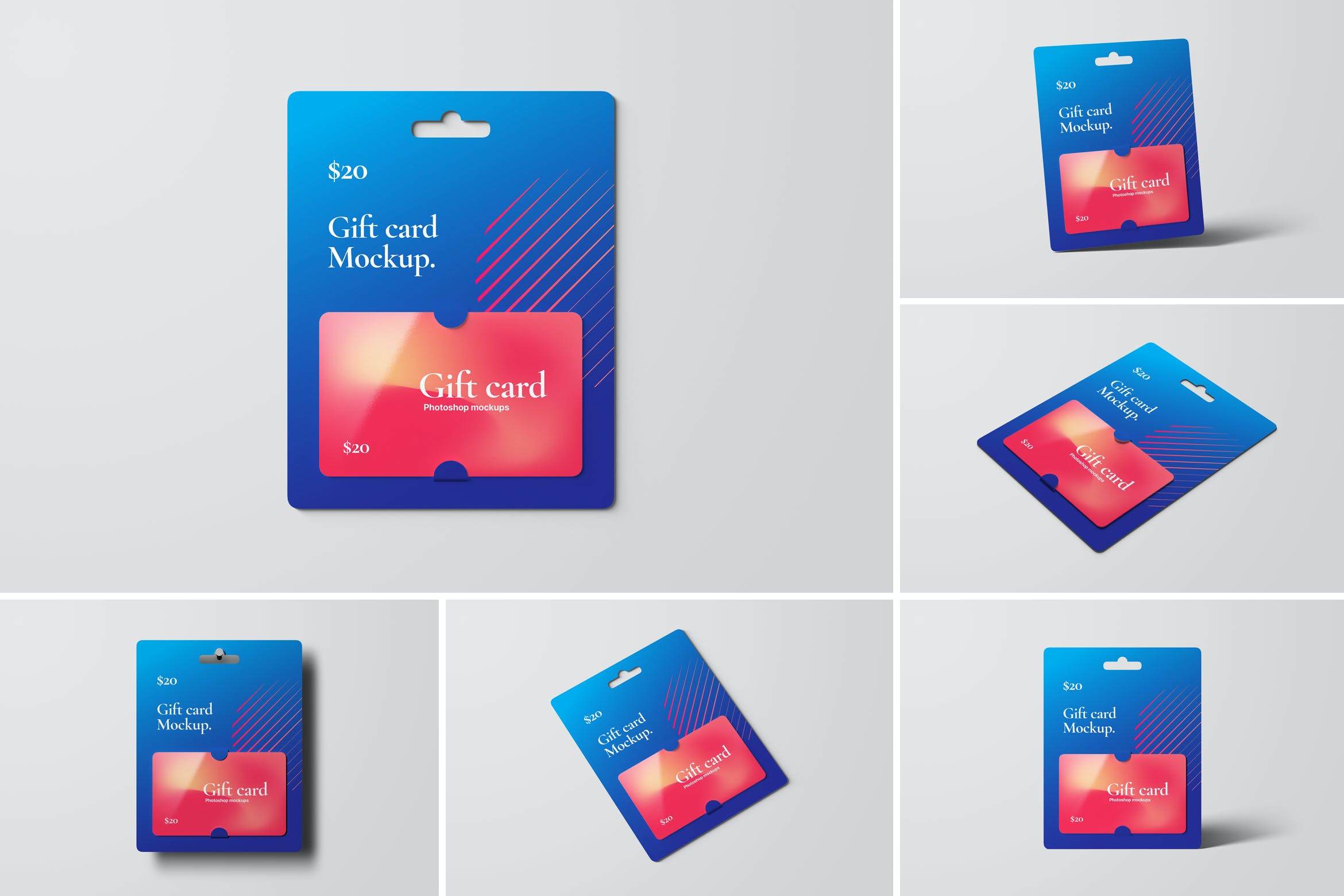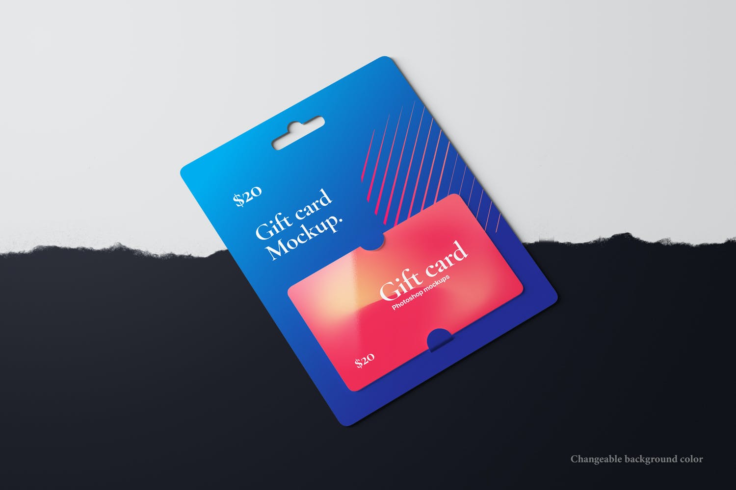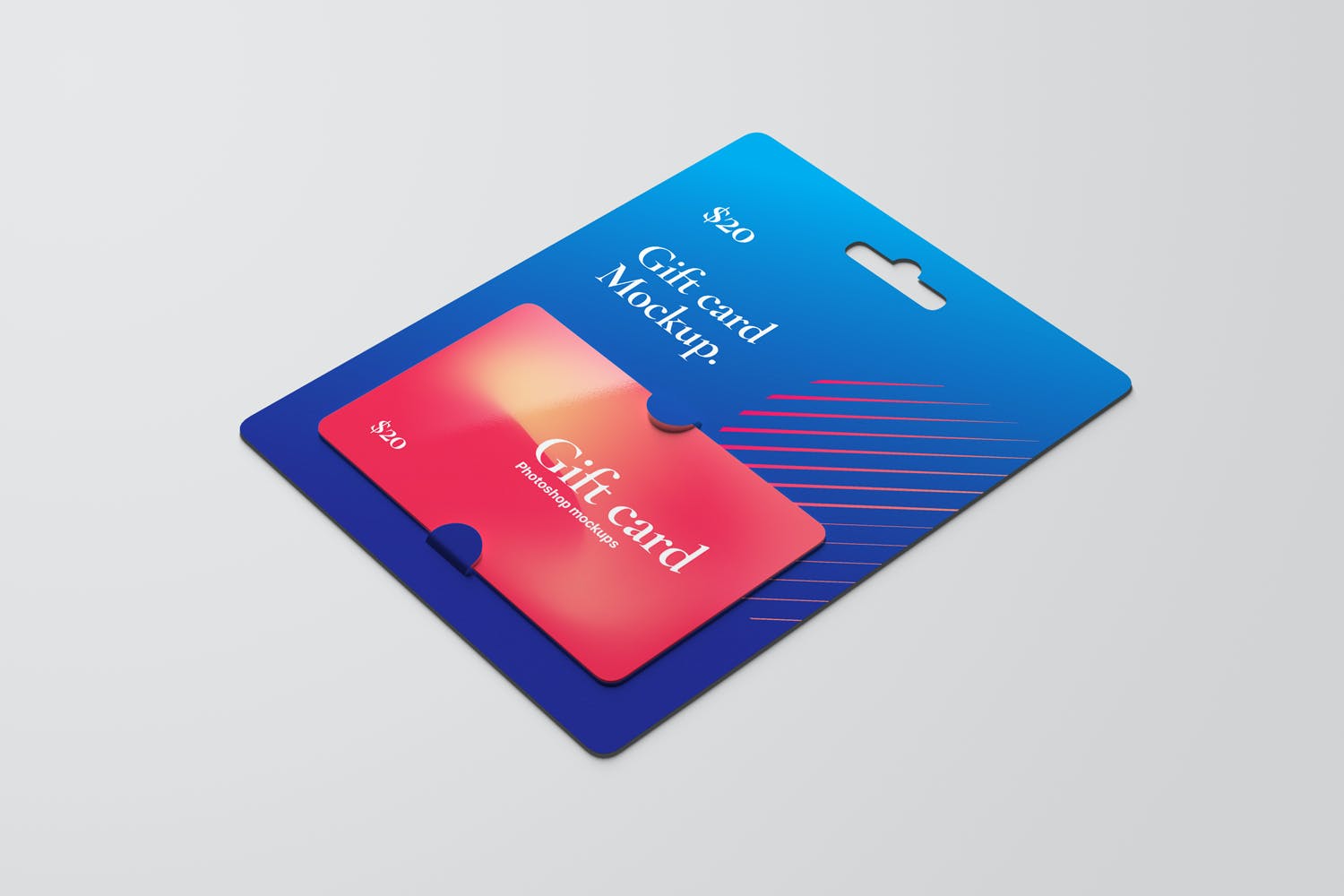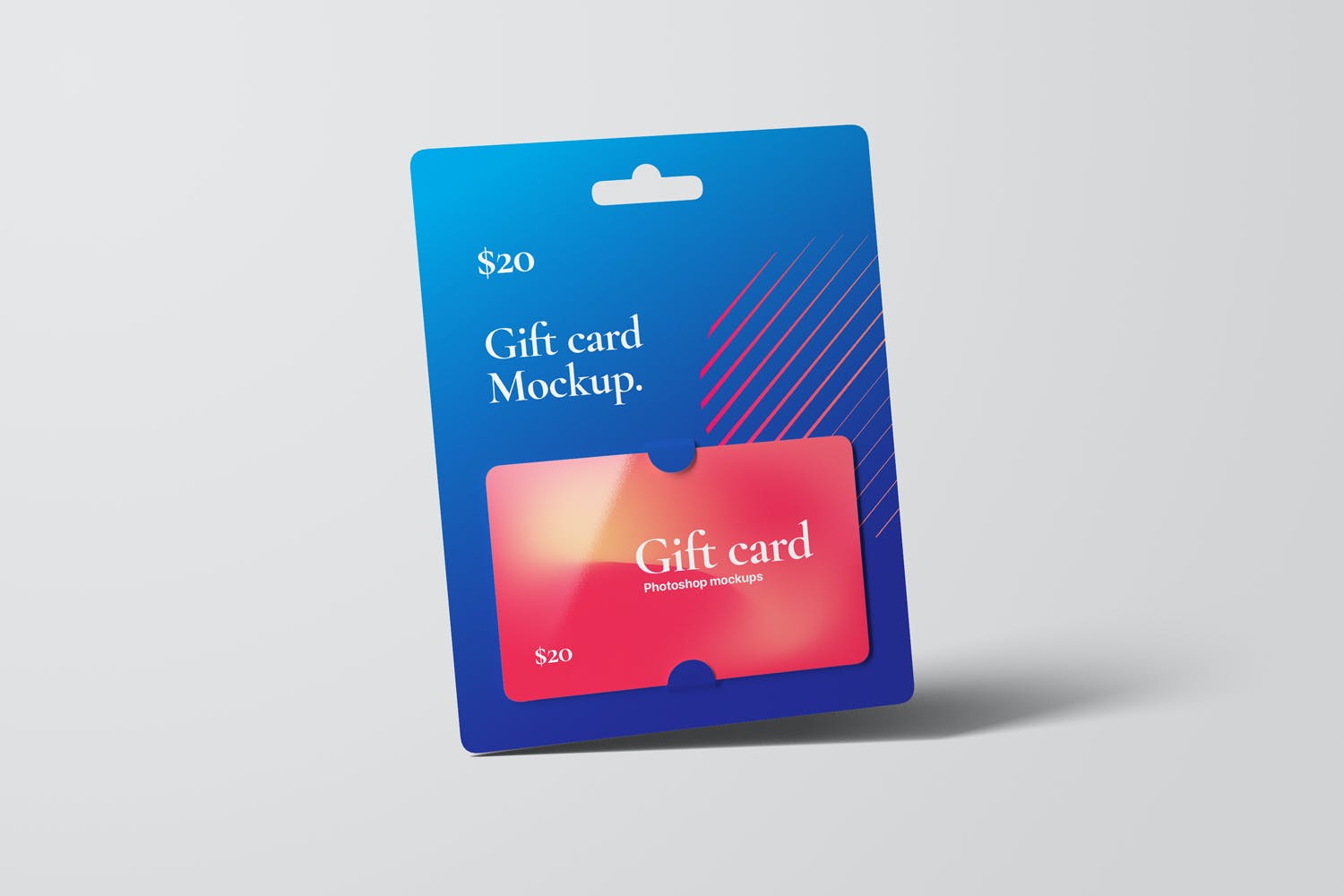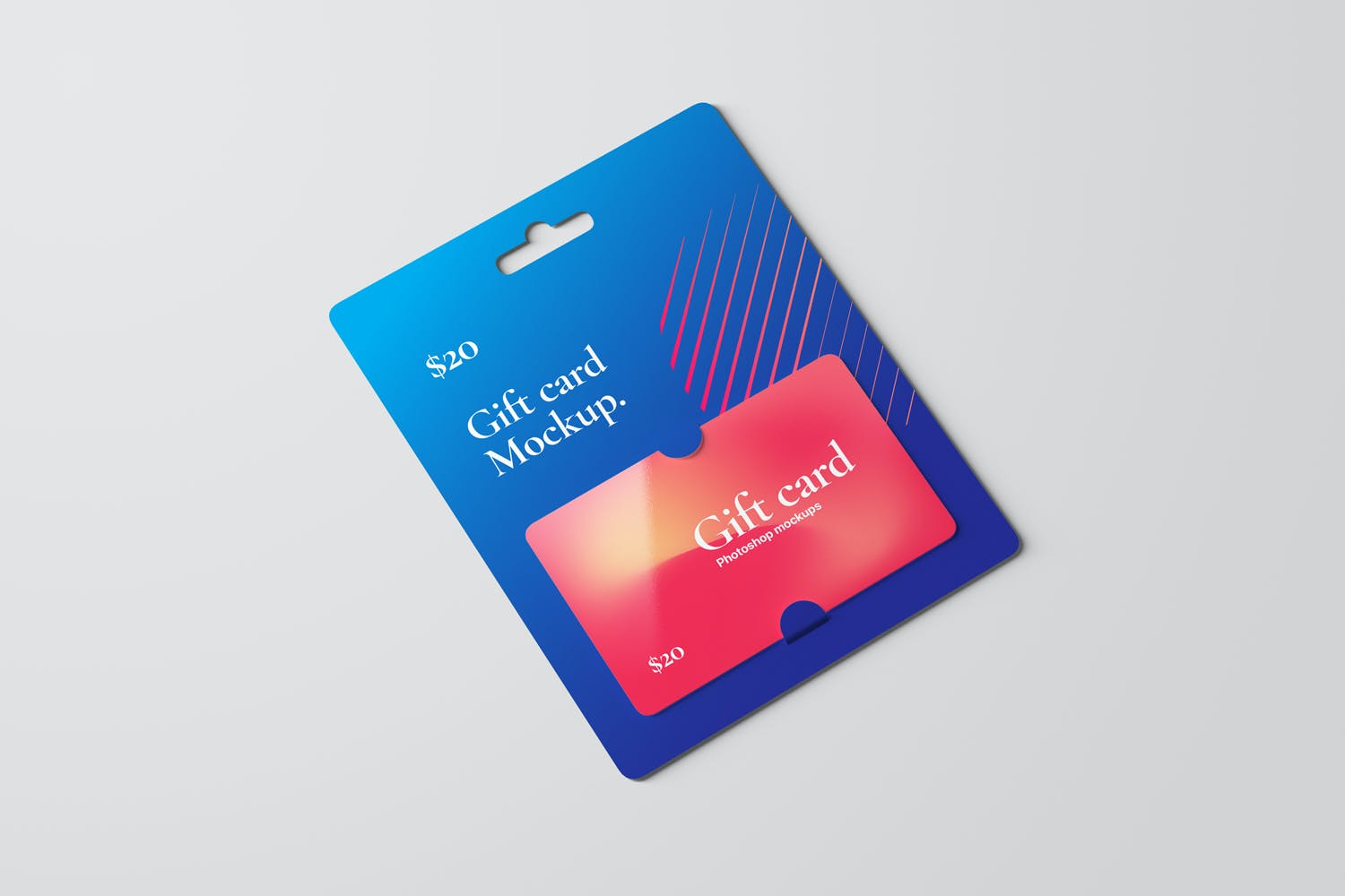 购物卡/礼品卡套装设计样机,专业展示您的礼品卡、优惠券或优惠券设计。智能对象功能,帮助您在几秒钟内用自己的设计替换当前的设计。