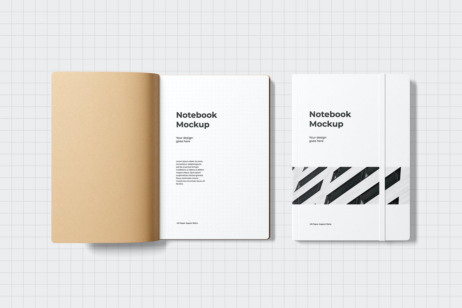 一个高度可定制的A5纸质笔记本模型,具有封面和内部视图。您可以使用包含的智能对象层编辑这两个视图,以展示您自己的设计、绘图、注释、品牌或徽标。这两个视图都可以独立于彼此和背景进行编辑和移动。您可以禁用任一视图、更改背景色、调整阴影不透明度和颜色,甚至更改封面上的束带颜色。