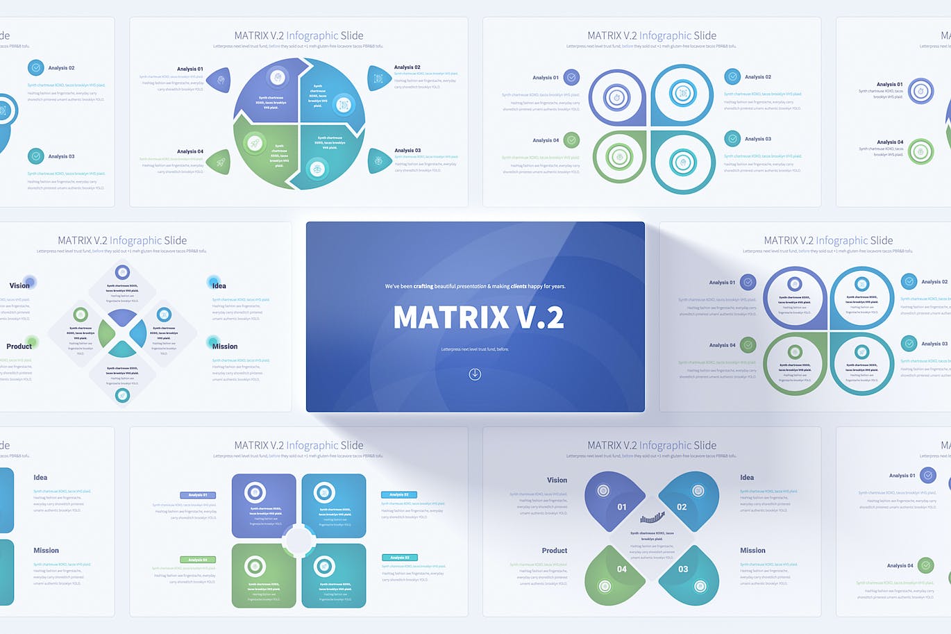 MATRIX V.2 PowerPoint信息图形幻灯片有17张独特的幻灯片/总共204张幻灯片,它具有许多功能。它由Slide Master witch制成,使得定制非常简单。它有12种颜色的变化与光背景。内置16:9全高清分辨率。所有演示都包括动画幻灯片和过渡。可轻松编辑所有元素。适合那些希望以简单有趣的方式展示其业务的人。非常适合商业、解决方案、数字营销、战略业务、企业、目标、个人和专业用途等。
