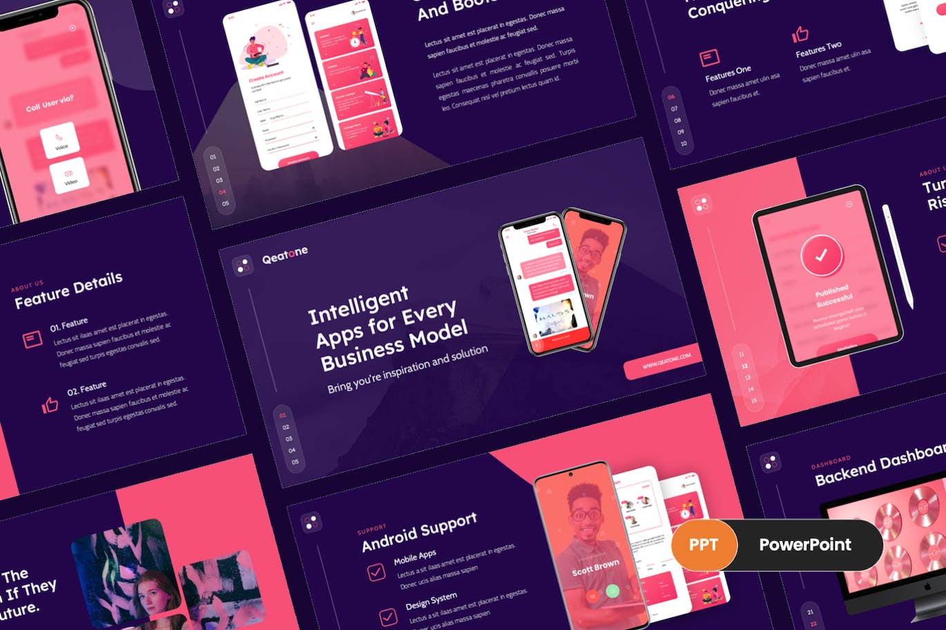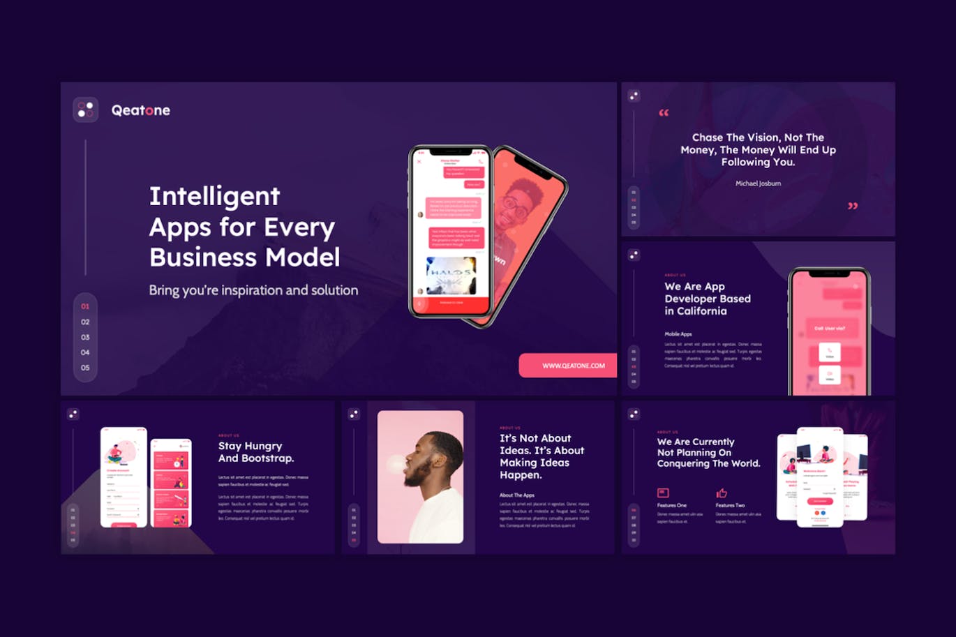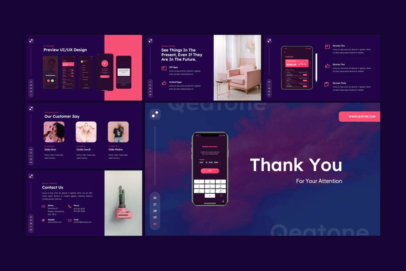 Qeatone-移动应用程序和SAAS谷歌幻灯片模板每张幻灯片都是独特的,而不仅仅是重复的布局。只需使用谷歌幻灯片,您就可以为您的品牌创建华丽的演讲平台,它是数字媒体套件、营销套件或演示文稿的完美选择。