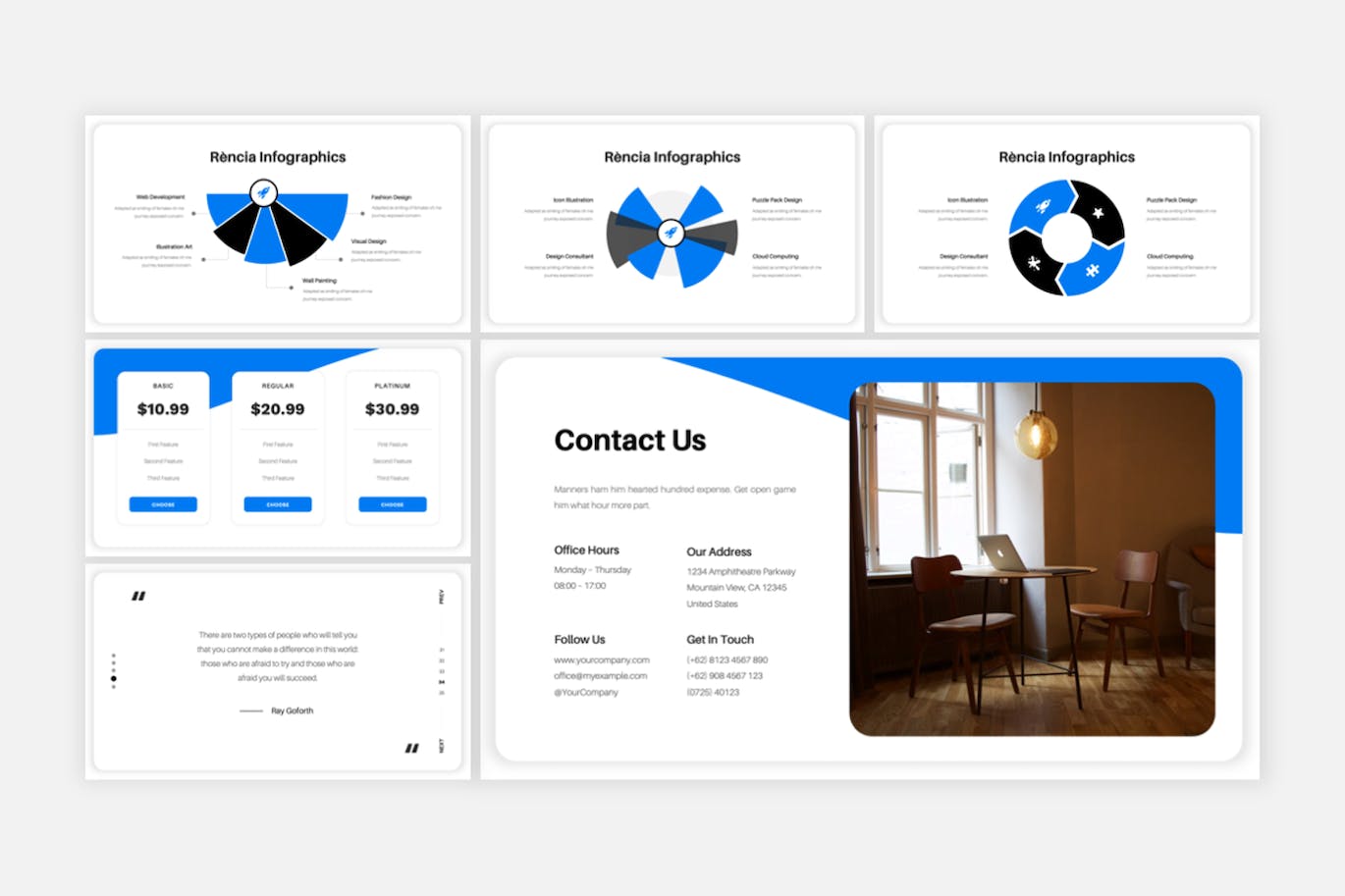Rència-广告代理PowerPoint模板每张幻灯片都是独特的,不仅仅是重复布局。只需使用谷歌幻灯片,您就可以为您的品牌创建华丽的演讲平台,它是数字媒体套件、营销套件或演示文稿的完美选择。
