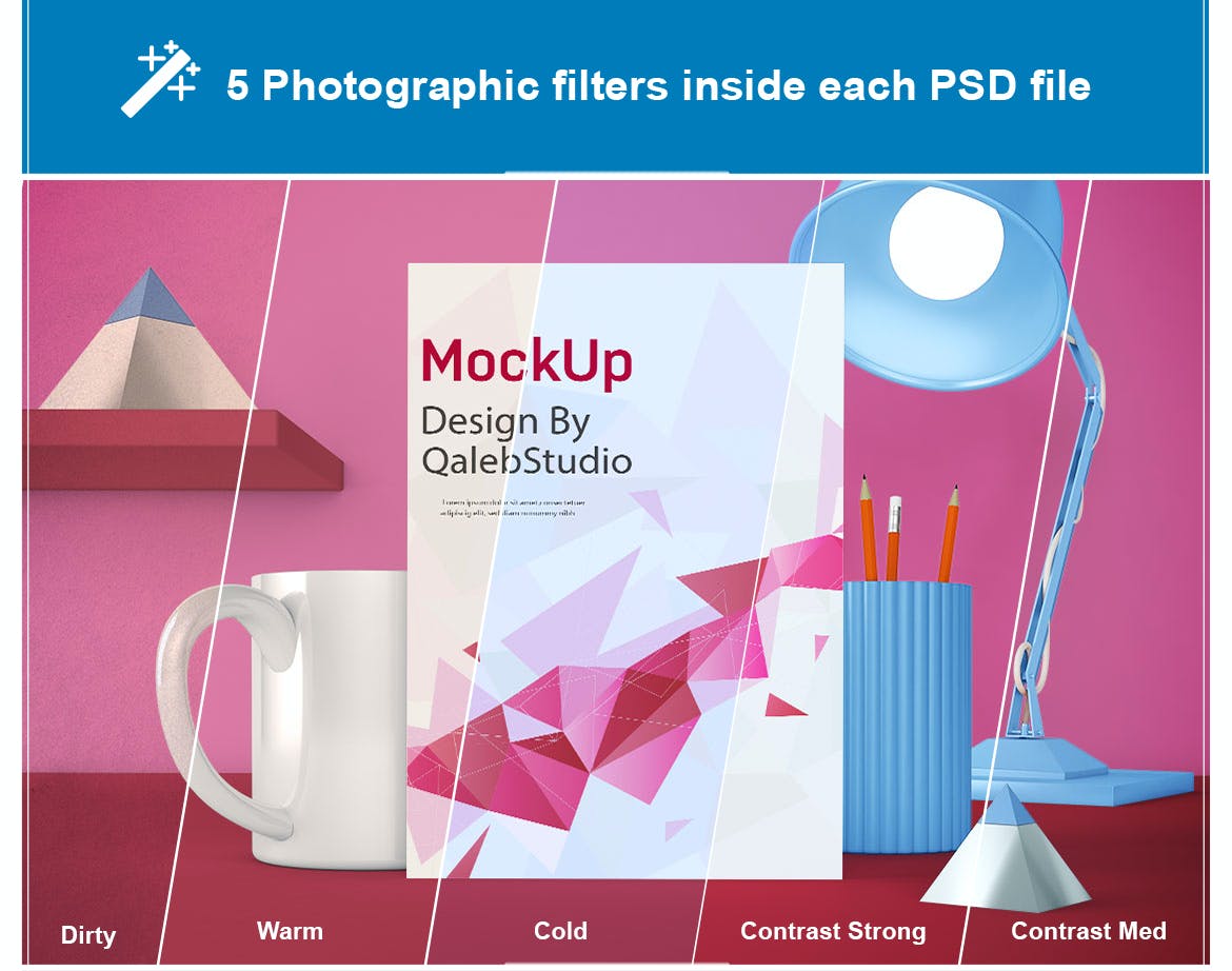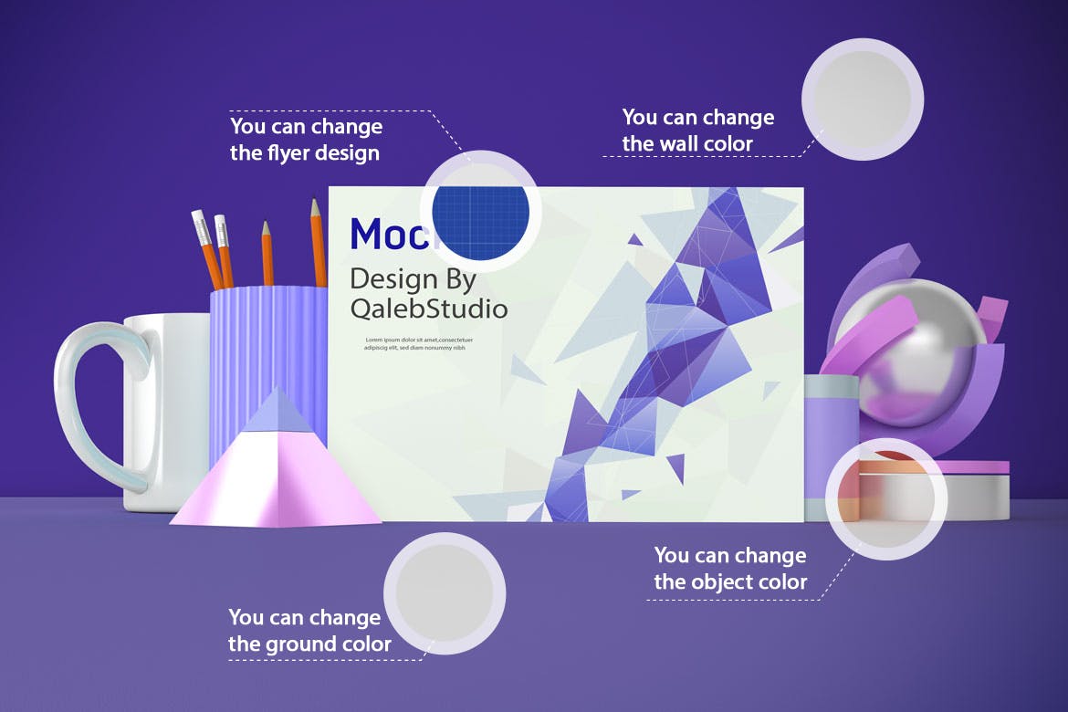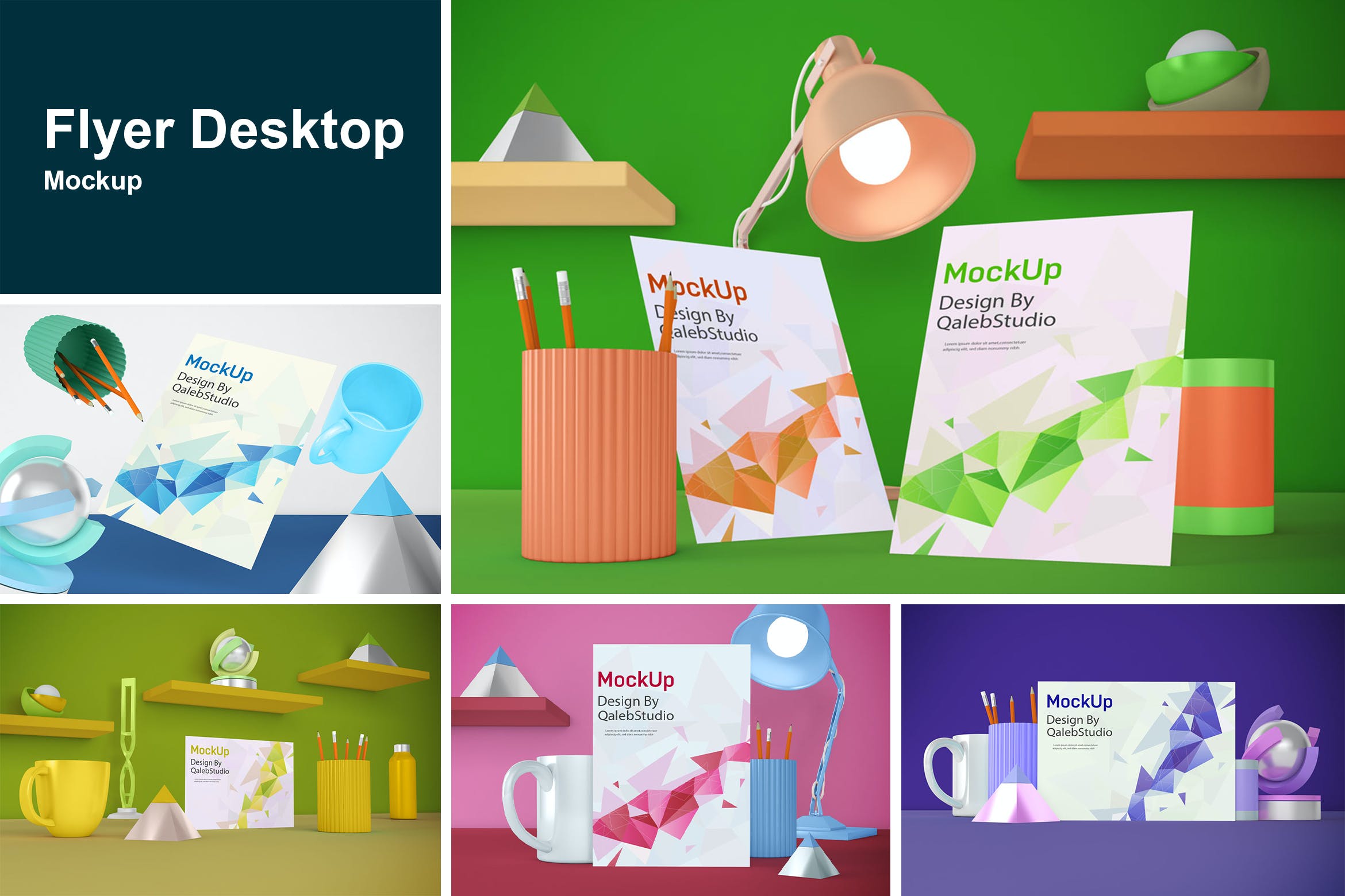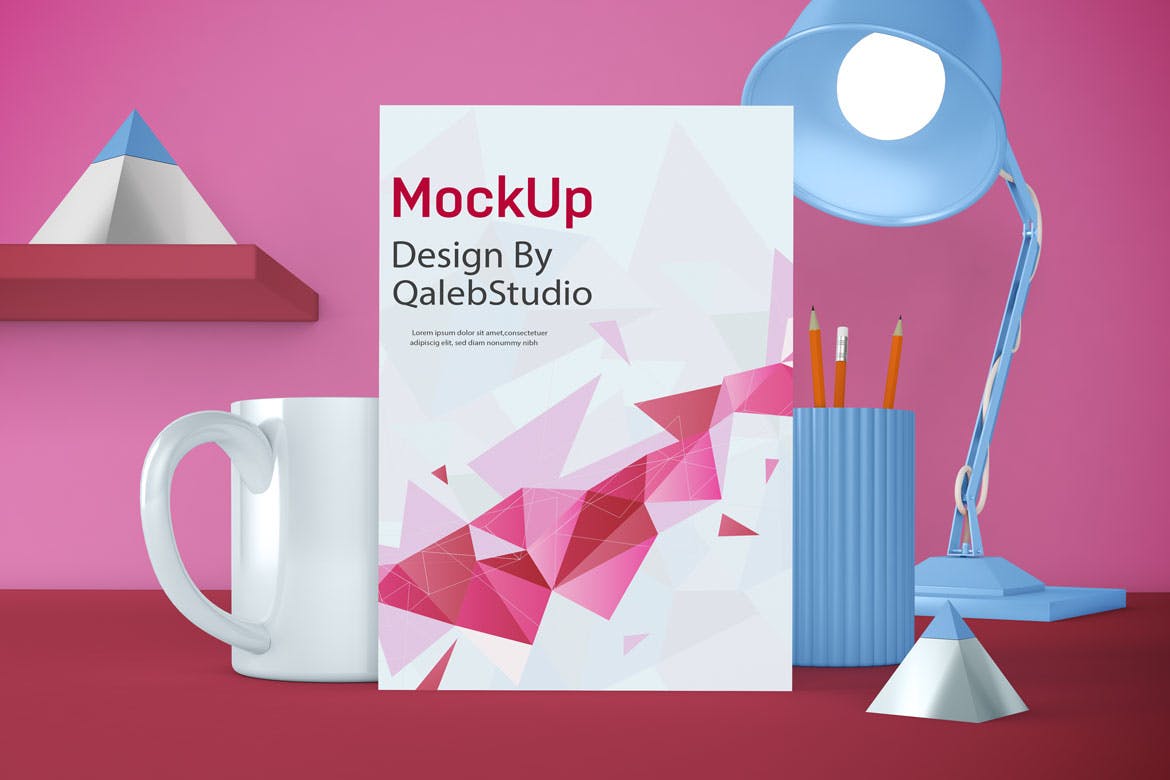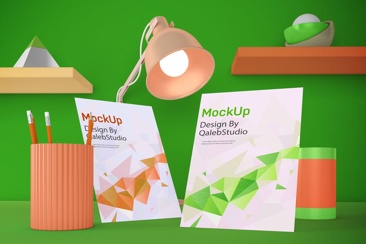 学习元素场景海报传单展示样机,可以以不同的角度呈现传单,可用于您的设计,适合品牌,由单独的图层集组成。高分辨率:4500×3000像素,易于与智能对象一起使用。