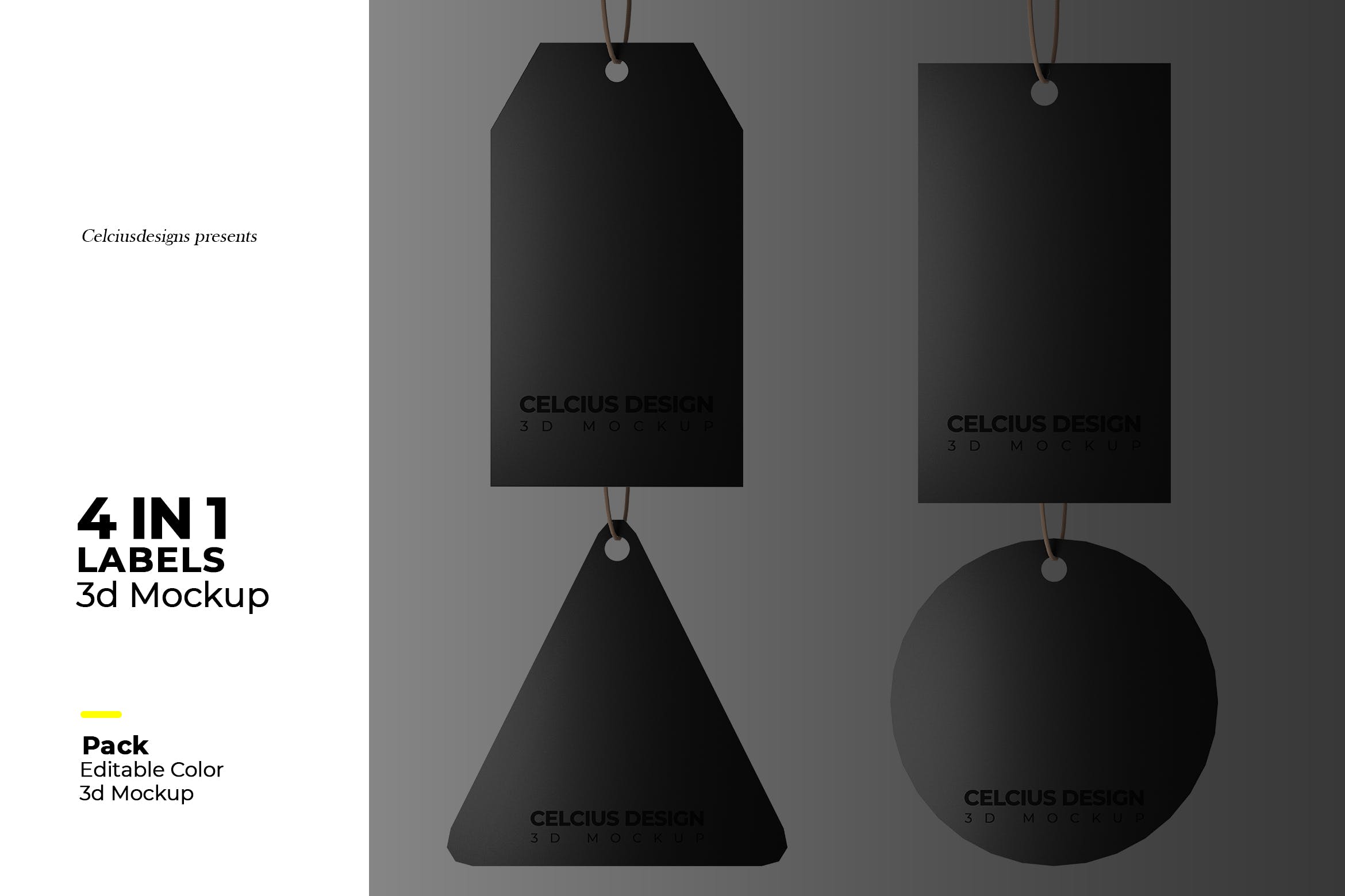 4种形状吊牌标签设计样机模板,40000×40000 像素,300 dpi,通过智能对象轻松快速地进行编辑,可更改的背景颜色,有组织的图层和文件夹。