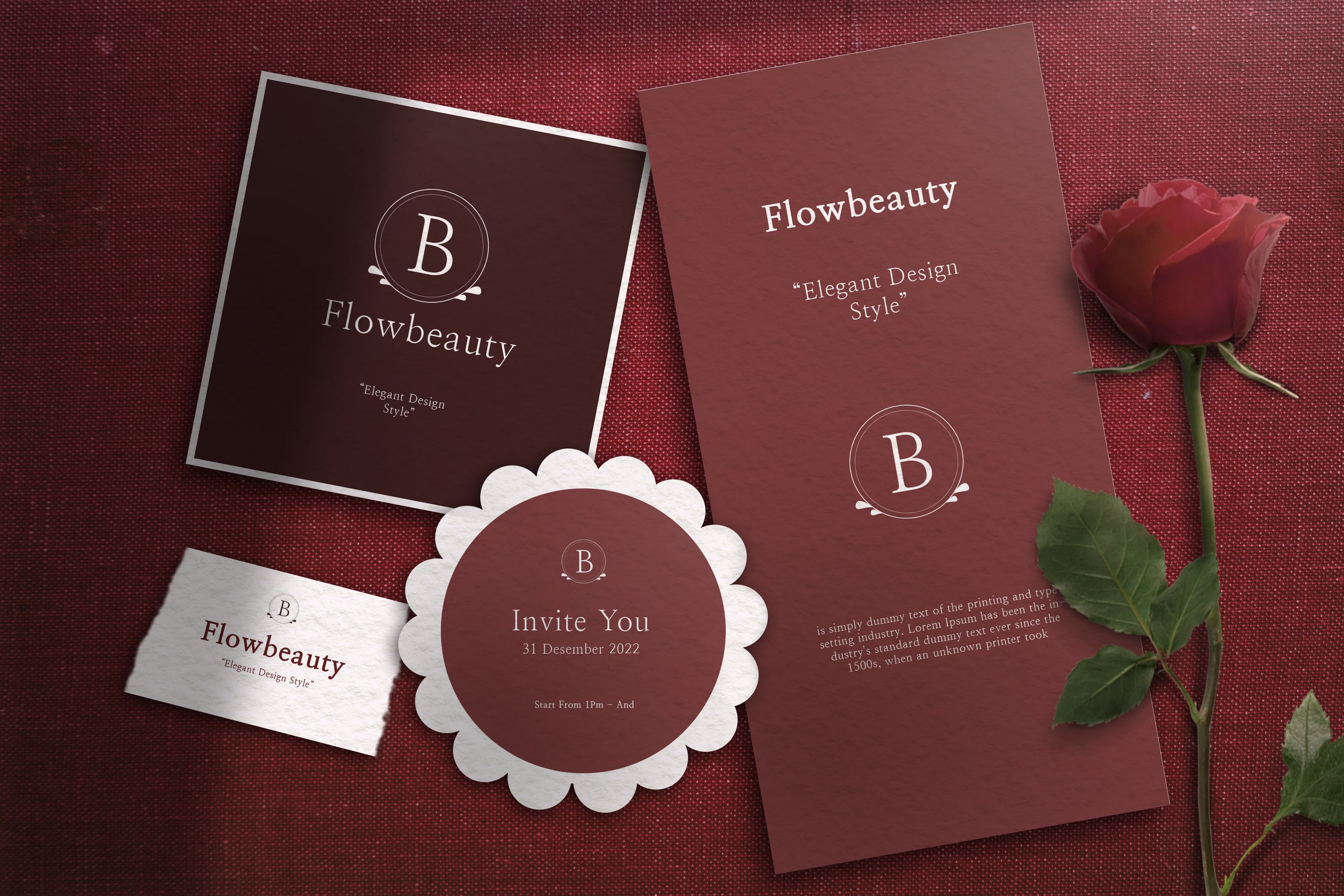 玫瑰花名片和小册子样机模板,完全可定制,您可以通过更新智能对象轻松应用设计。具有智能对象功能的PSD文件分层,易于编辑。