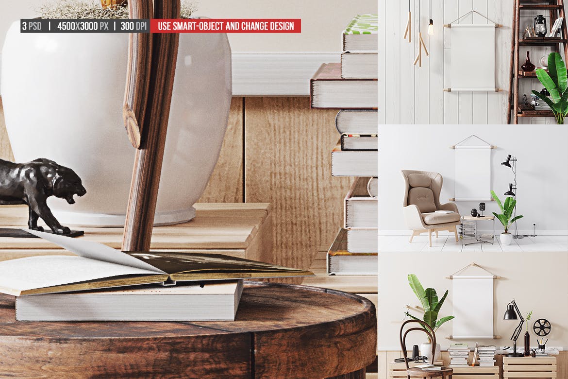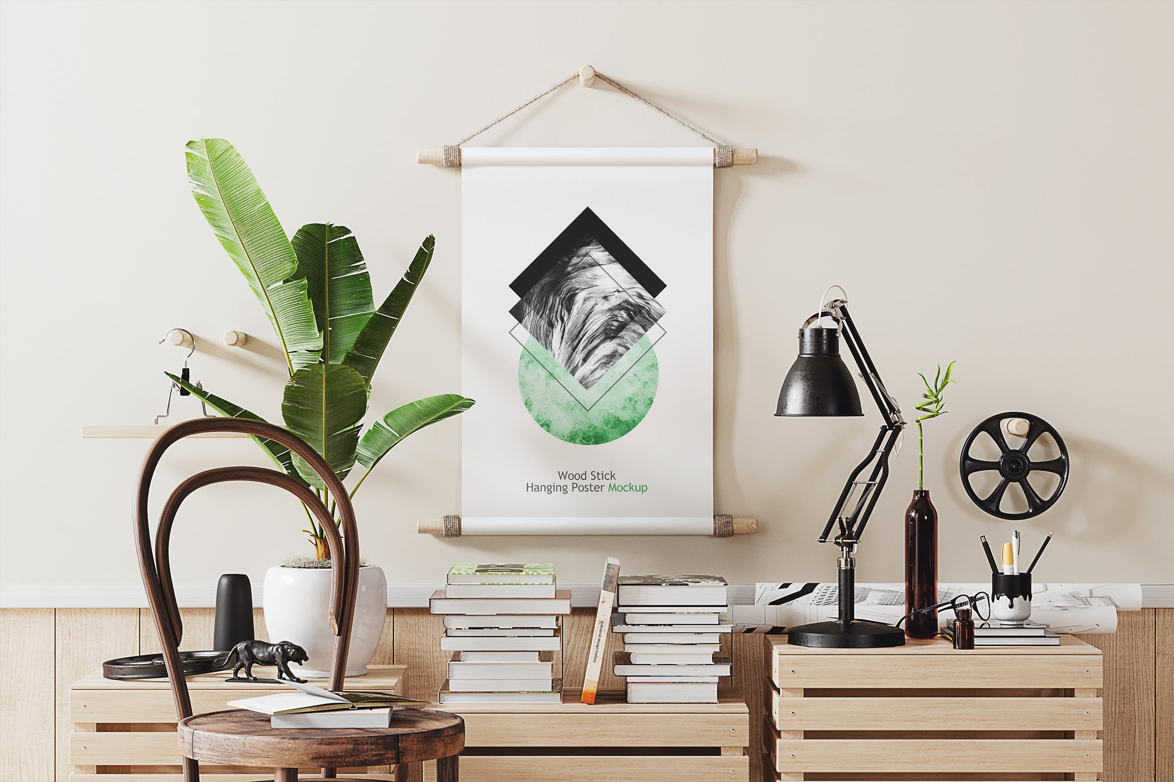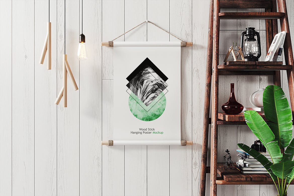木棍挂墙海报展示样机