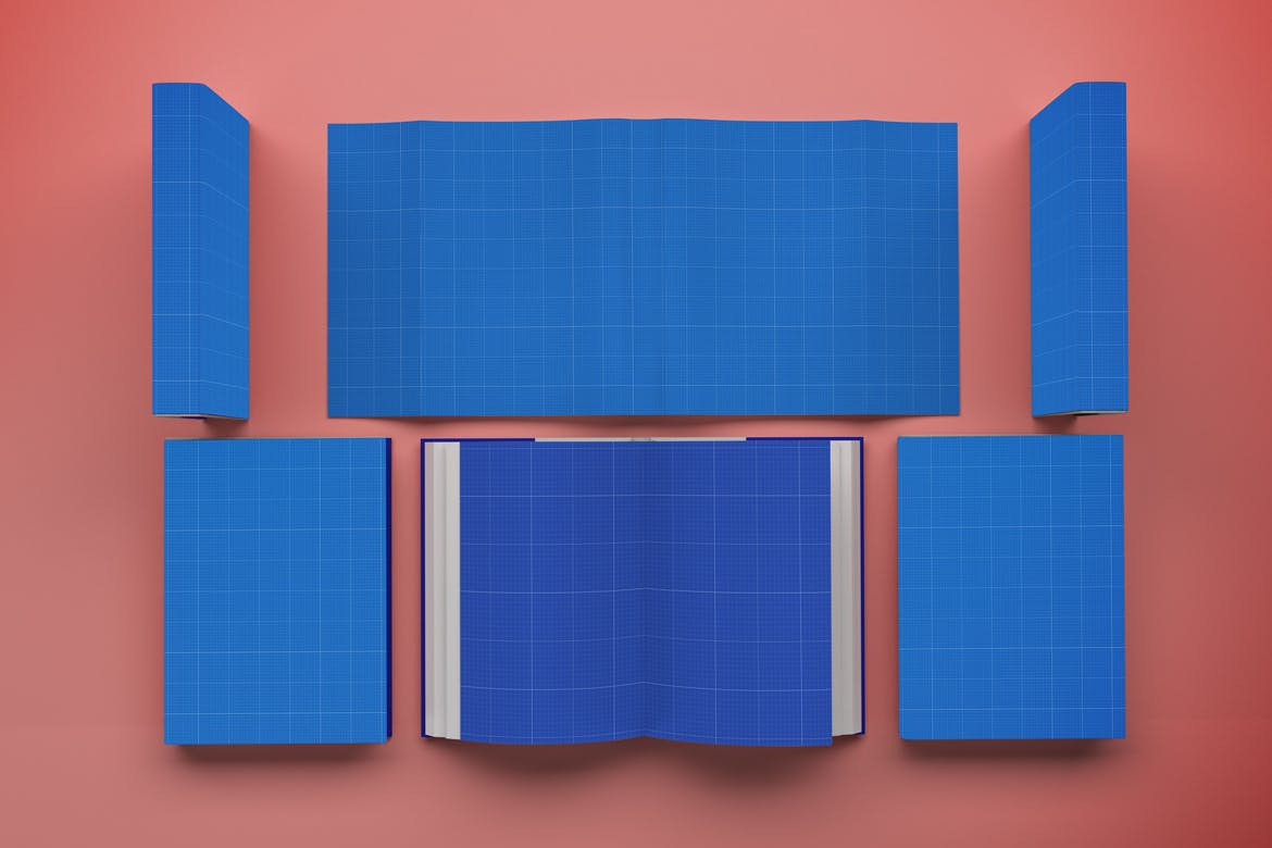多角度展示图书/书籍样机模板,可以将书籍以不同的角度呈现,您可以用于您的设计,适用于品牌,并且由单独的图层集组成。