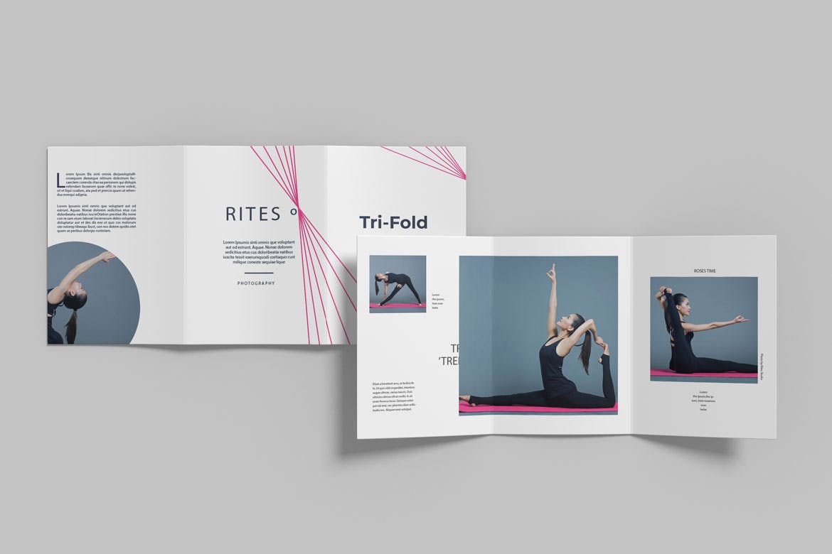 该项目由 3个不同的 A4 三折小册子样机组成,以逼真的外观展示您的模板设计。 这些样机文件使用智能对象功能,可帮助您在几秒钟内更改设计。