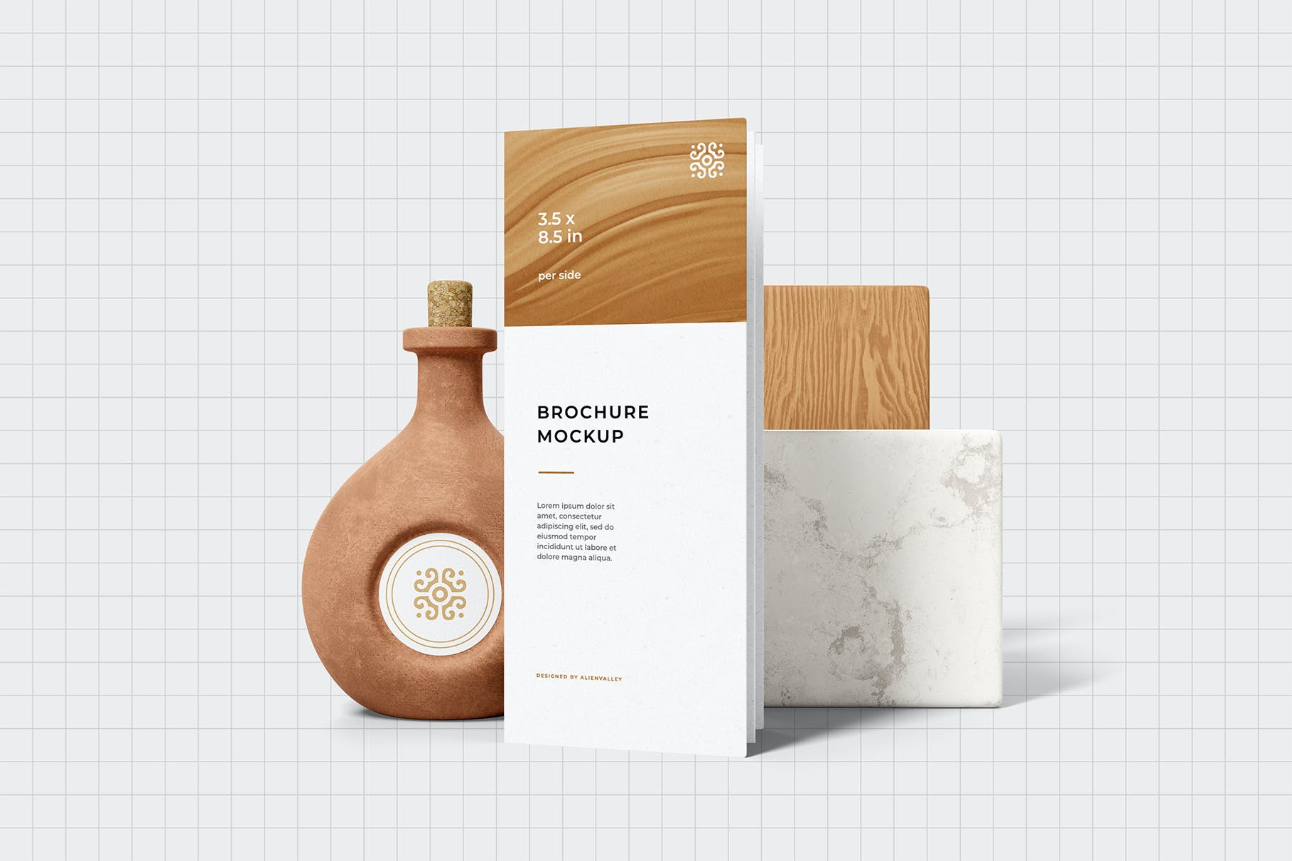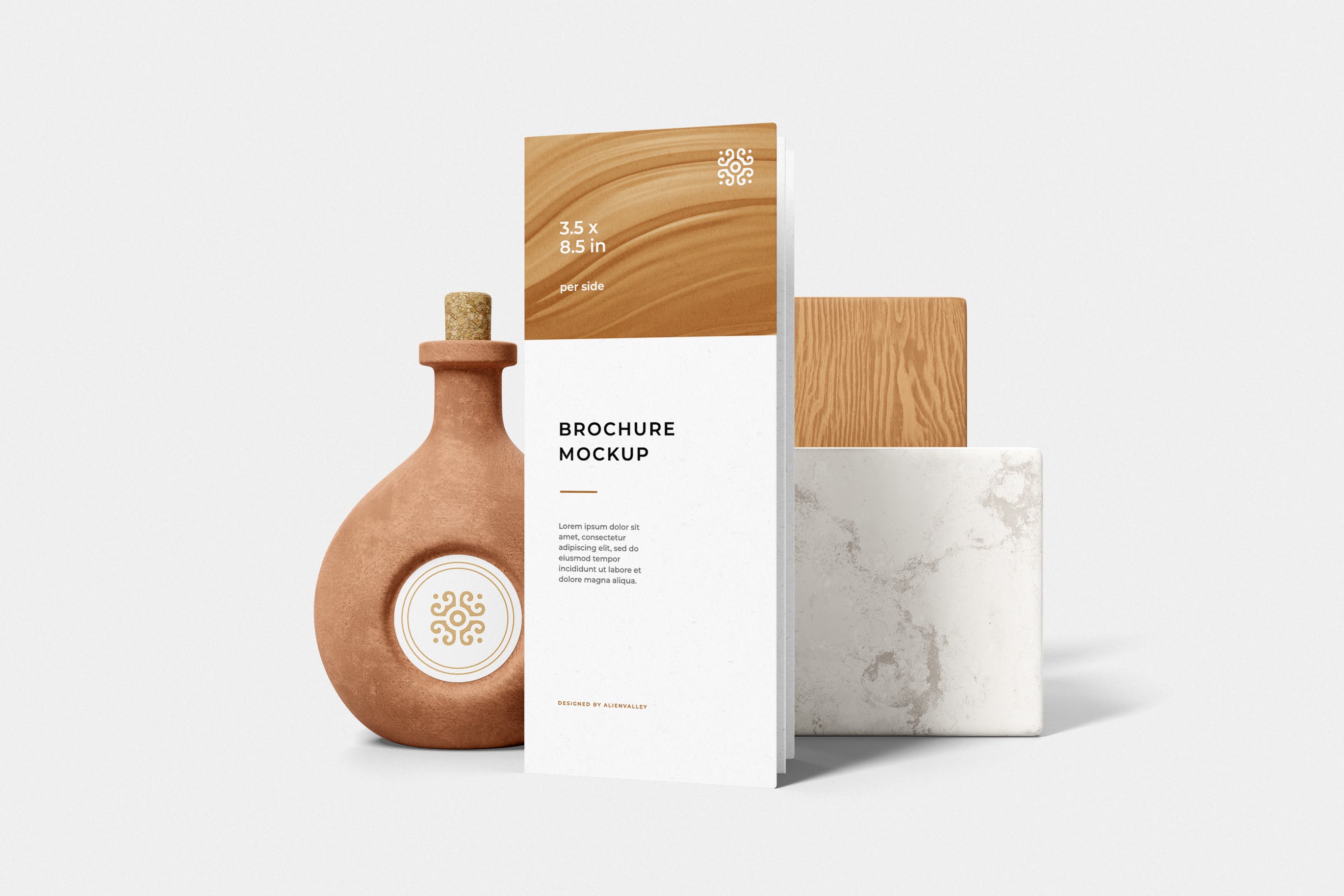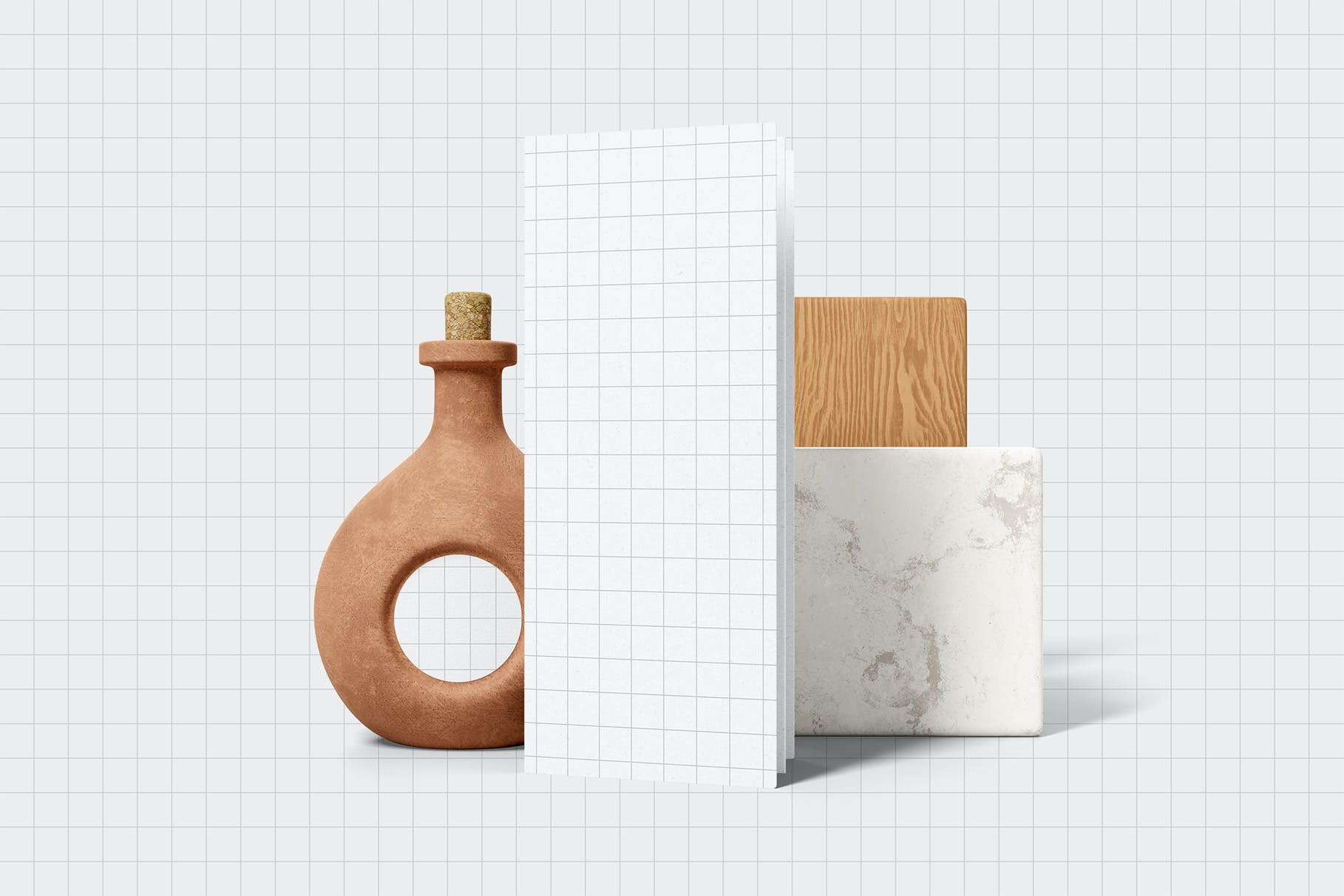 一个易于编辑的小册子样机,其中包含小册子和一些装饰品。 您可以使用智能对象层编辑宣传册首页,以展示您自己的设计、品牌或徽标。陶瓷瓶上的标签也可以编辑以显示您自己的设计,您还可以更改背景颜色。 我们包括 2 个默认背景,一个平面和一个 3d 版本。
