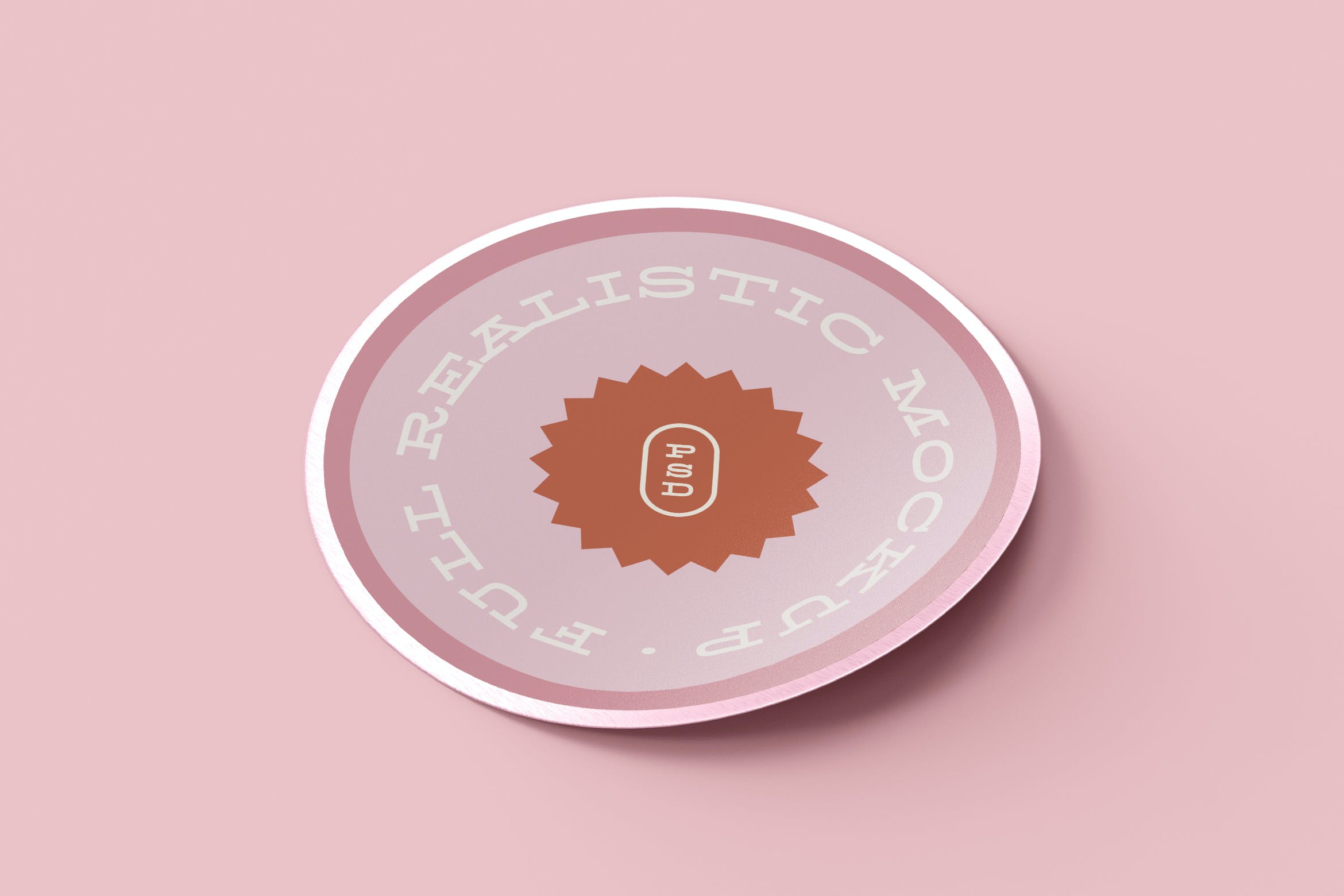 圆形贴纸Logo设计样机,样机上有一个智能对象可帮助您调整设计。 只需拖放即可。 使用起来非常简单,使用纯色图层易于重新着色。高分辨率,300 dpi),示例样本设计不包含在下载文件中。