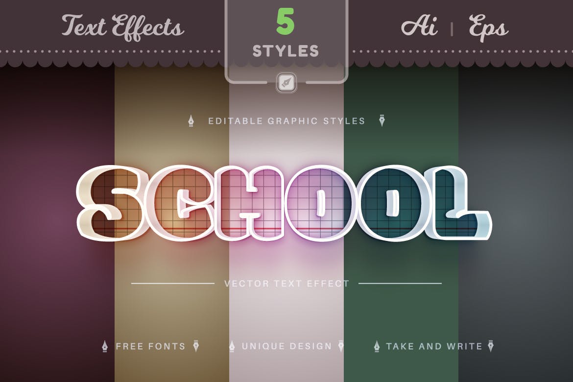我很高兴介绍我的新一套5矢量文本效果“回到学校”。