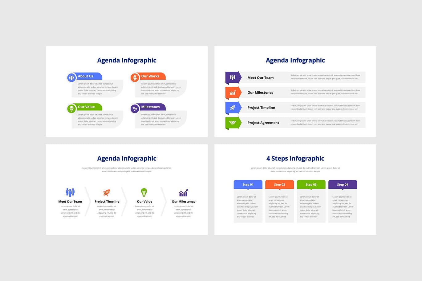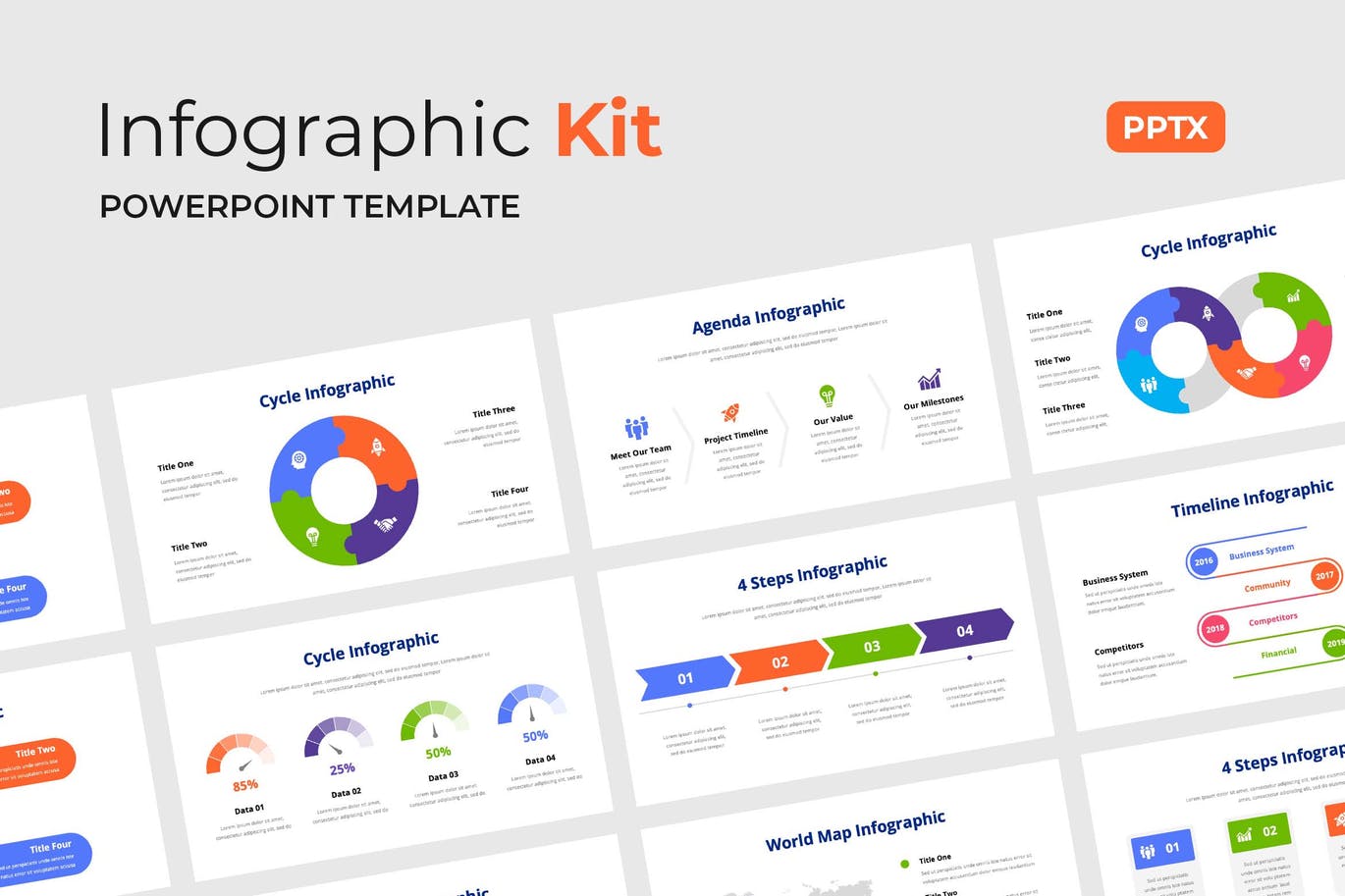 **简单的信息图形Powerpoint**可以将信息图形用于所需的项目演示,如数据和信息可视化、路线图、时间线、列表等。