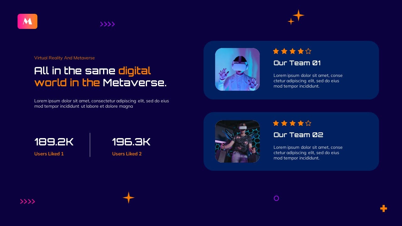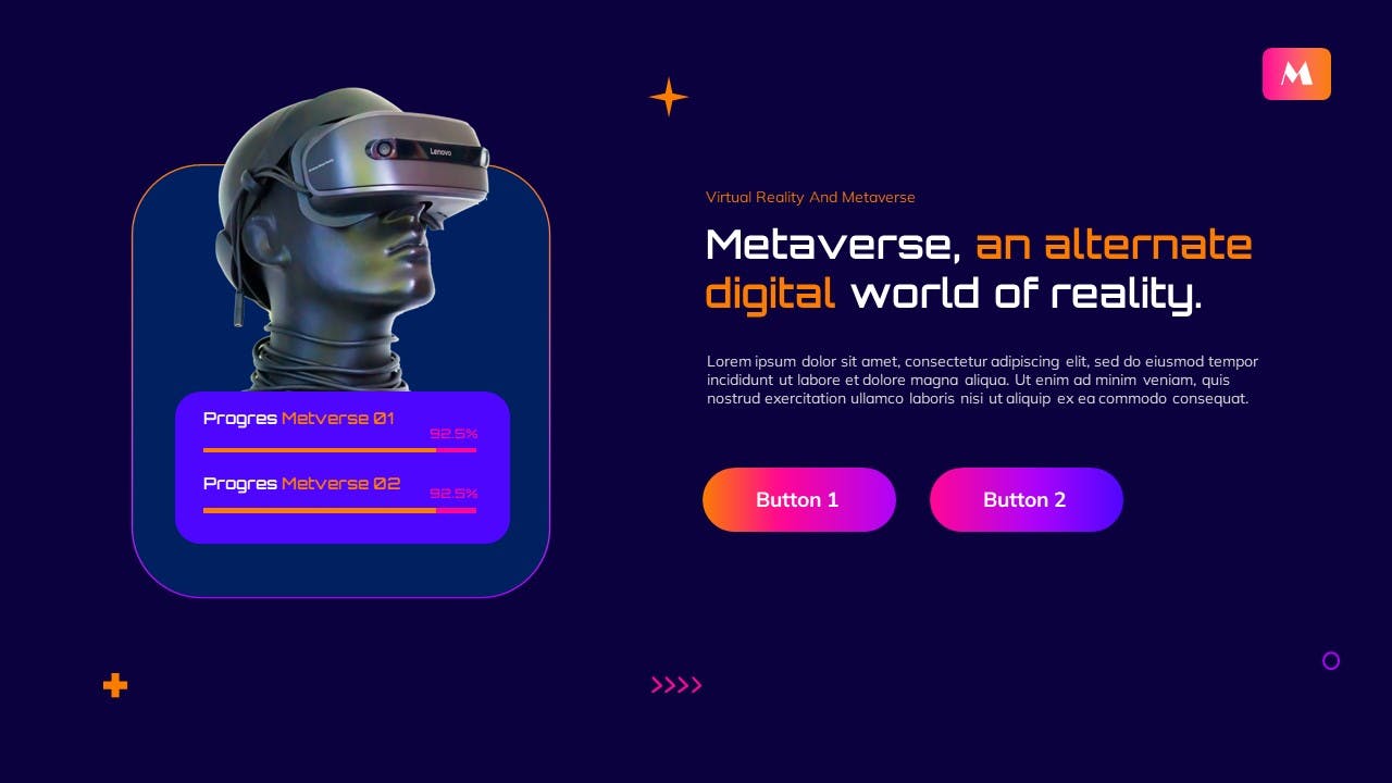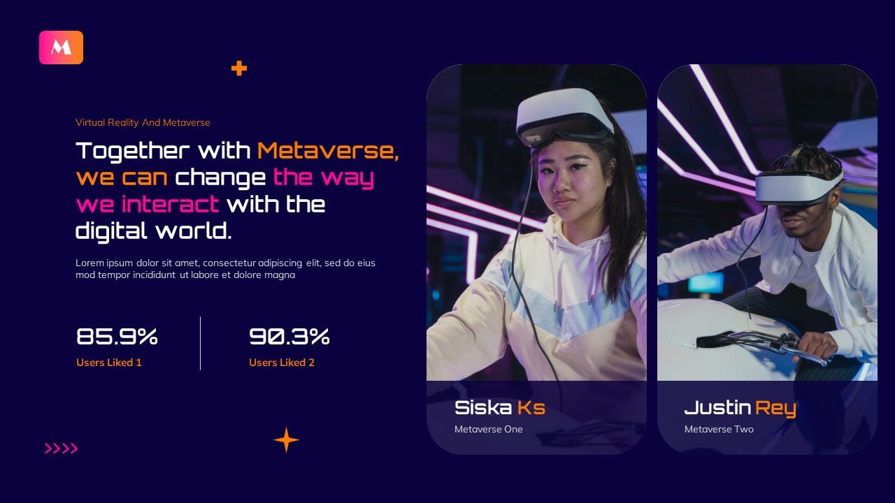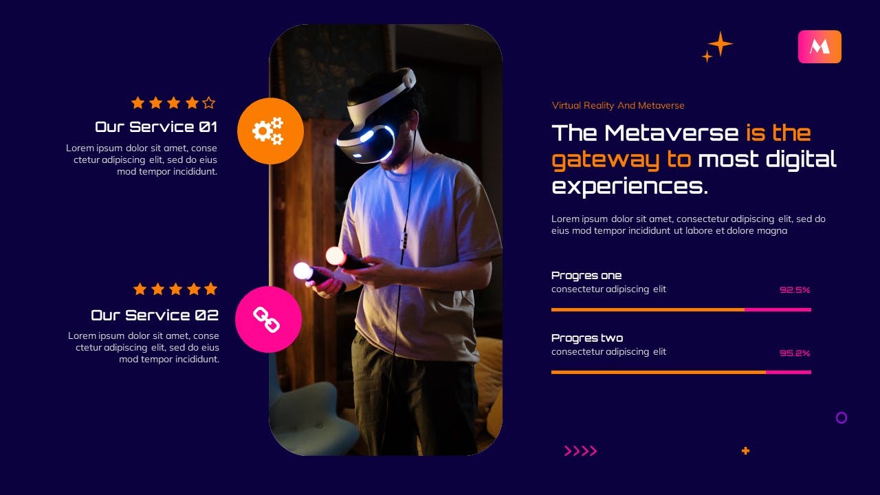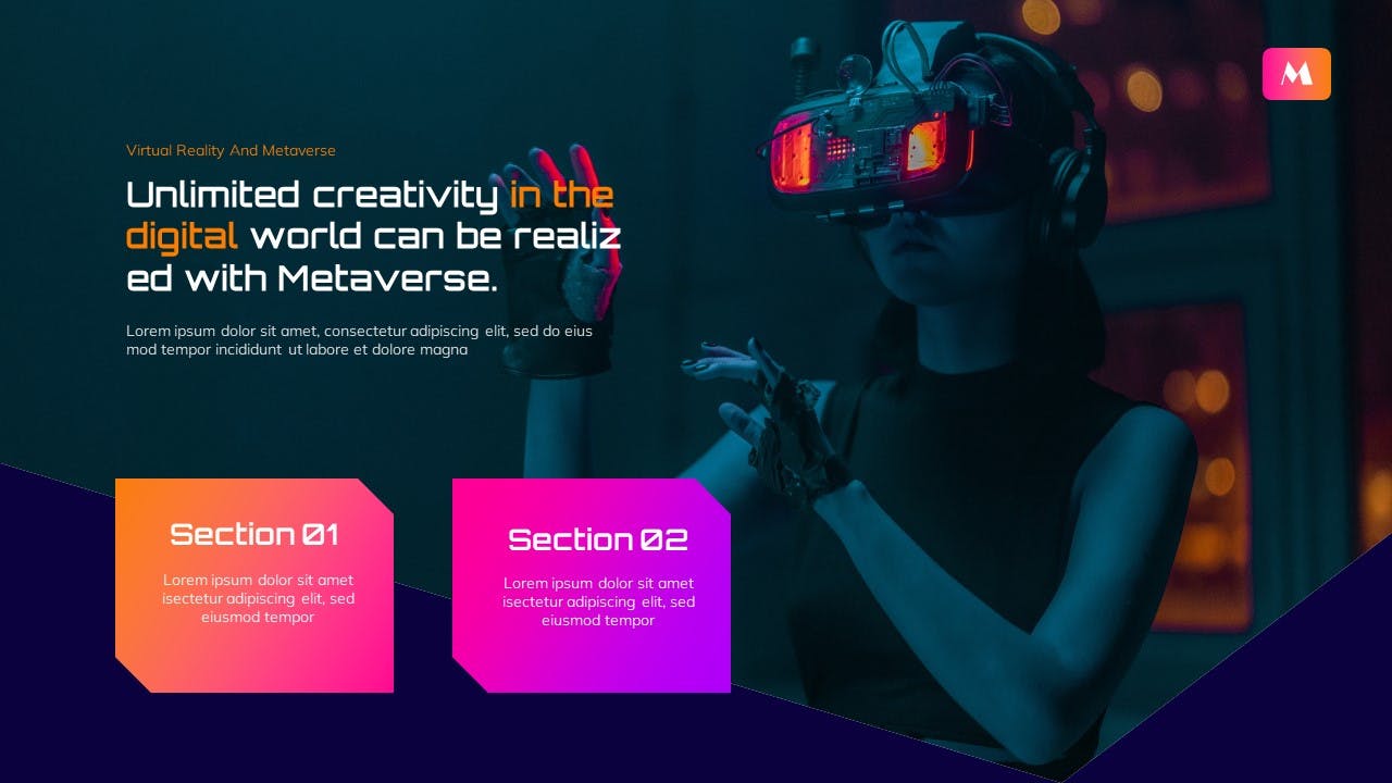 METVERSE-虚拟现实和Metaverse Powerpoint模板具有专业、超现代和独特的设计,每张幻灯片都充满了爱和对细节的关注。METVERSE-虚拟现实和Metaverse Powerpoint模板是一种创造性的Powerpoint模板,可用于任何类型的演示:商业、投资组合、公司、品牌、广告等。