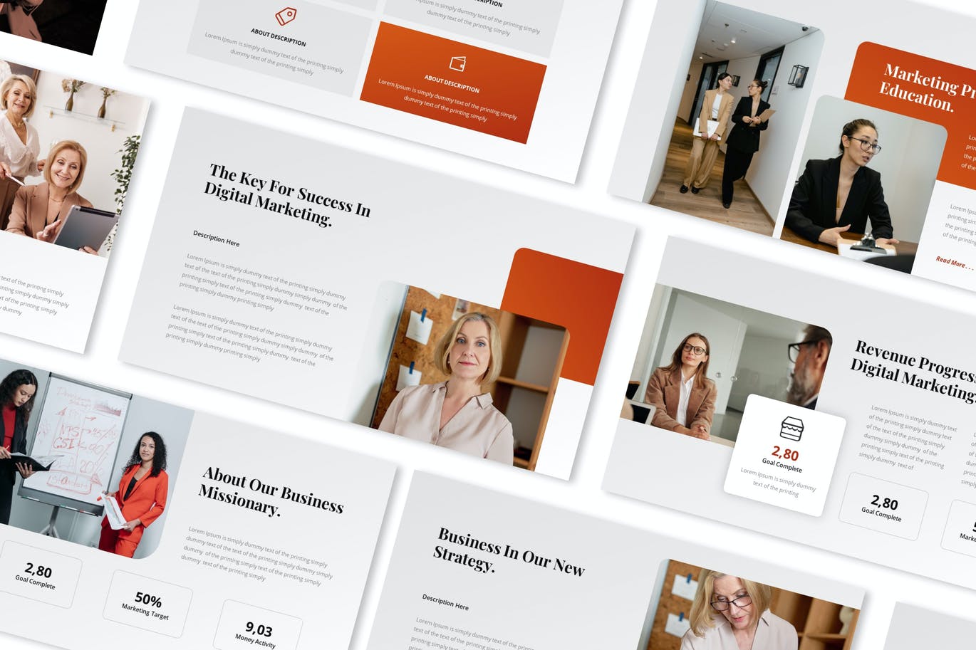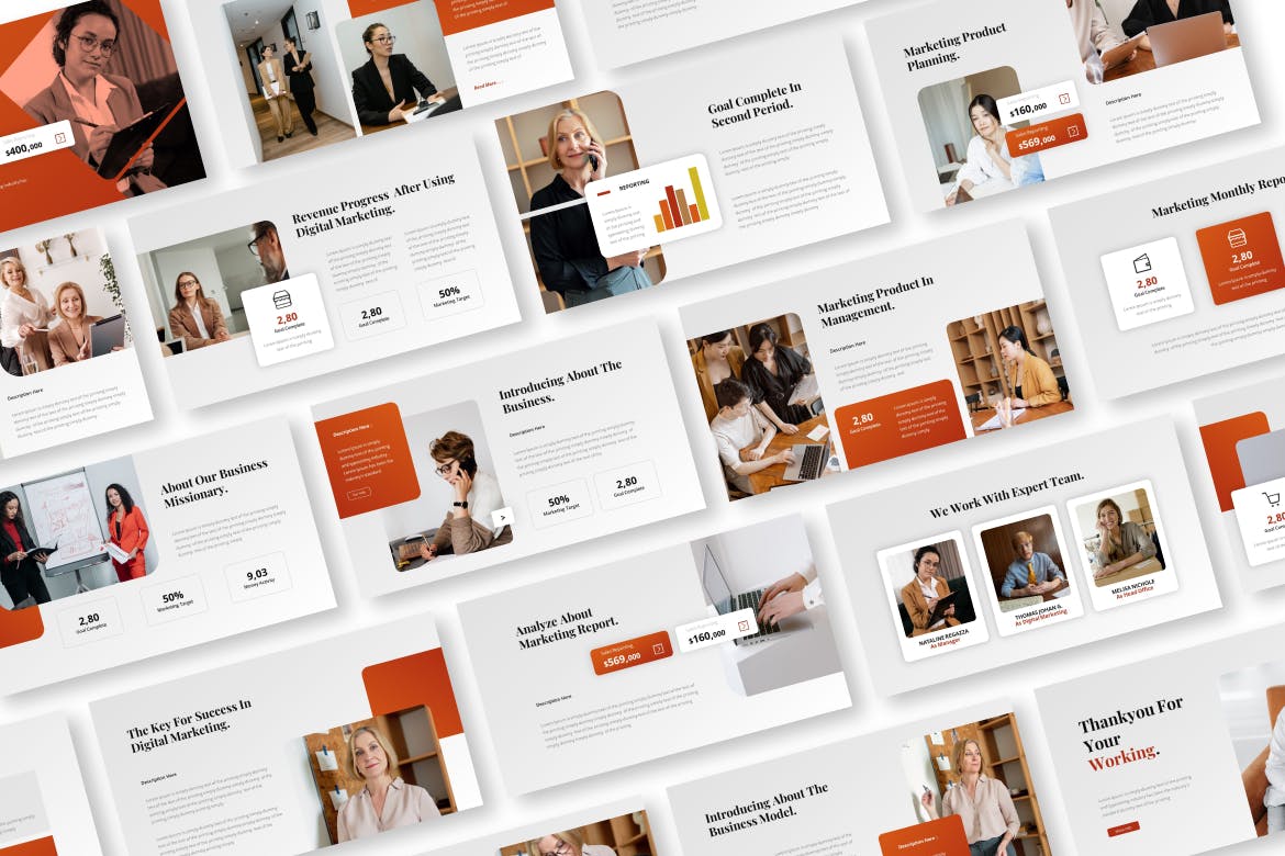 营销报告Powerpoint演示文稿模板是用于公司演示文稿的营销报告指南和手册。具有简单、简洁、专业的设计理念。用于高品质品牌手册书籍演示模板。