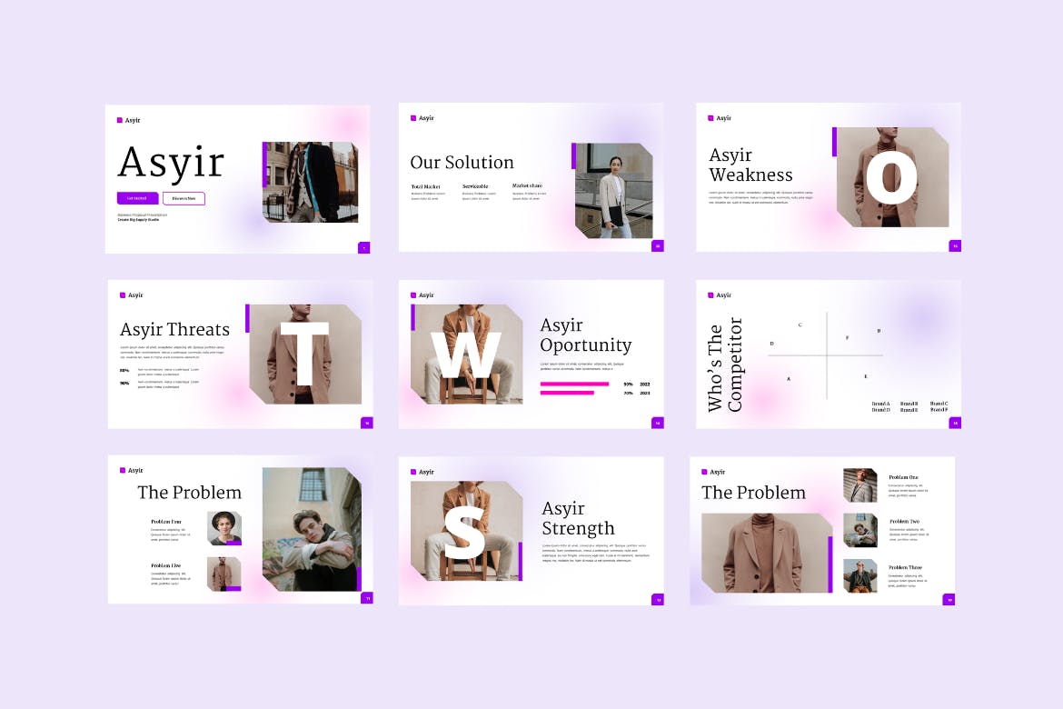 使用Asyir Powerpoint业务计划书演示文稿将为您节省大量时间,因为您只专注于准备演示文稿内容。