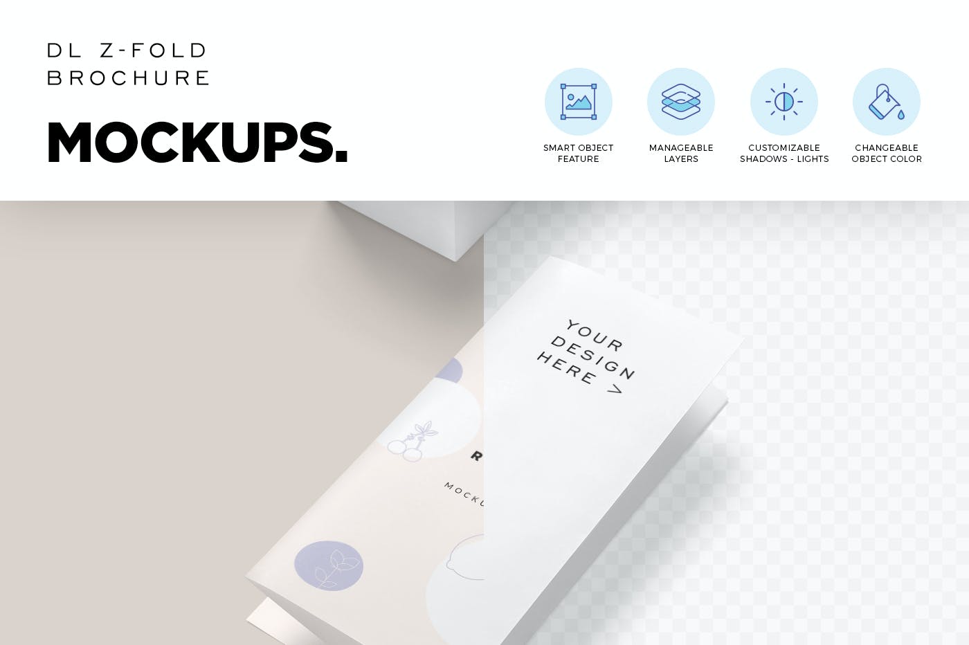 优质 DL 尺寸 Z 折传单样机,将在三折传单上展示您最新的平面广告。 这些样机提供了不同的角度来展示您的不同服务和促销活动。 您可以使用智能对象和命名良好的图层来个性化设计、颜色、效果、阴影和背景。