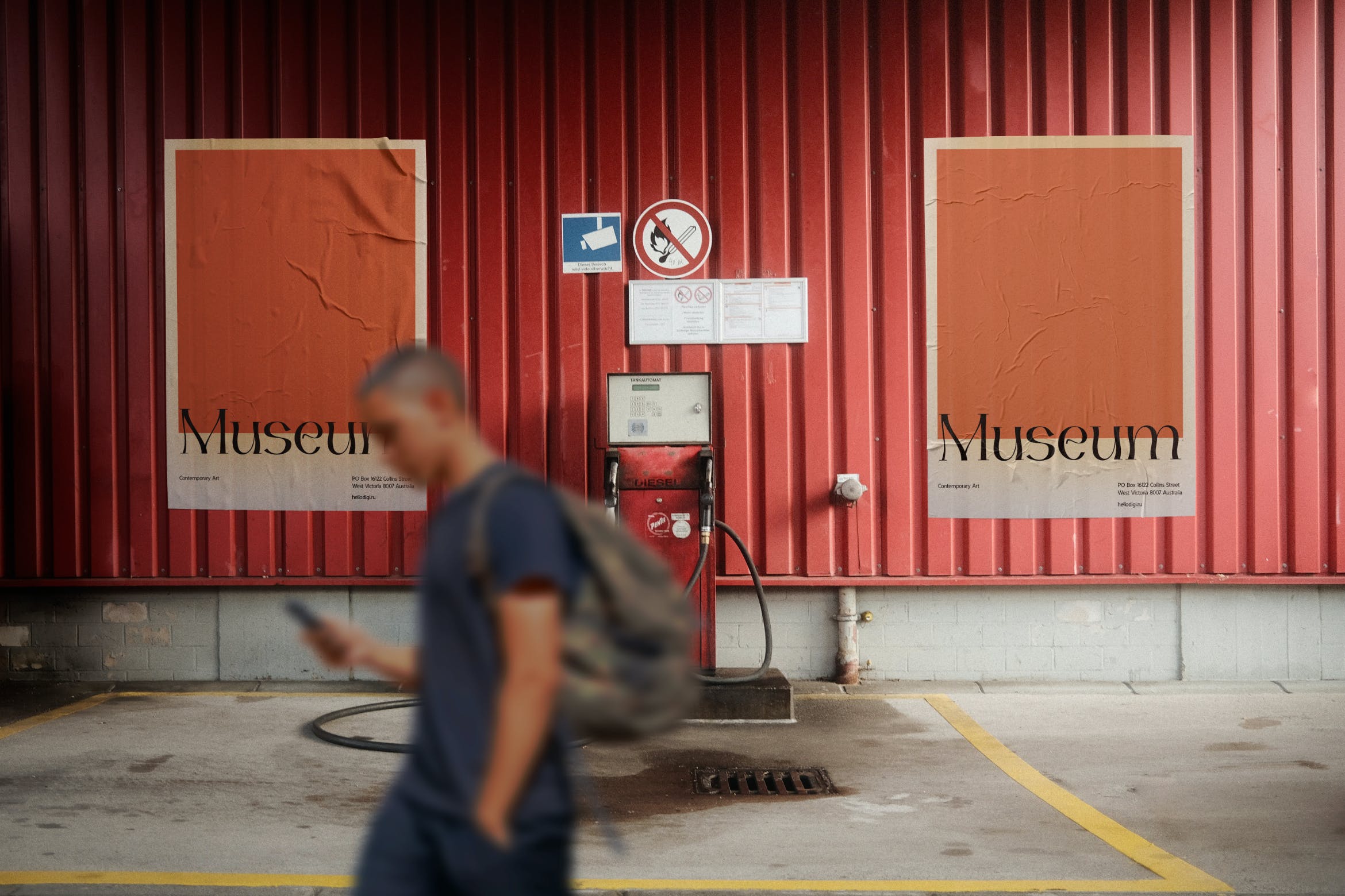 真实场景街道墙体海报展示样机,智能对象图层(只需双击图层、放置设计并保存),高分辨率 6000x4000px, 300 dpi,所有对象和阴影单独分开,所有样机和物品都可以移动创建自己独特的场景。
