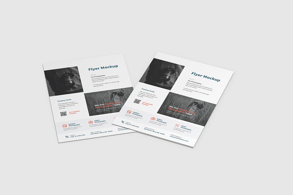 通过此外观新颖的时尚的传单样机展示您的设计。 使用Photoshop中的智能对象功能可以很容易地进行应用。 因此,您可以在几秒钟内完成设计。 该模型是用结构良好的图层创建的。
