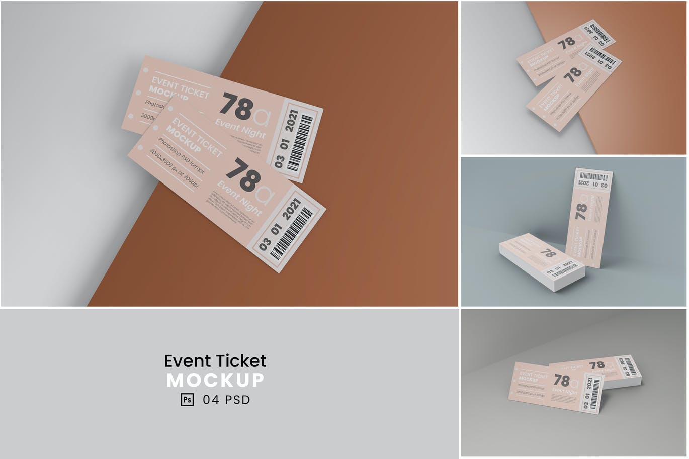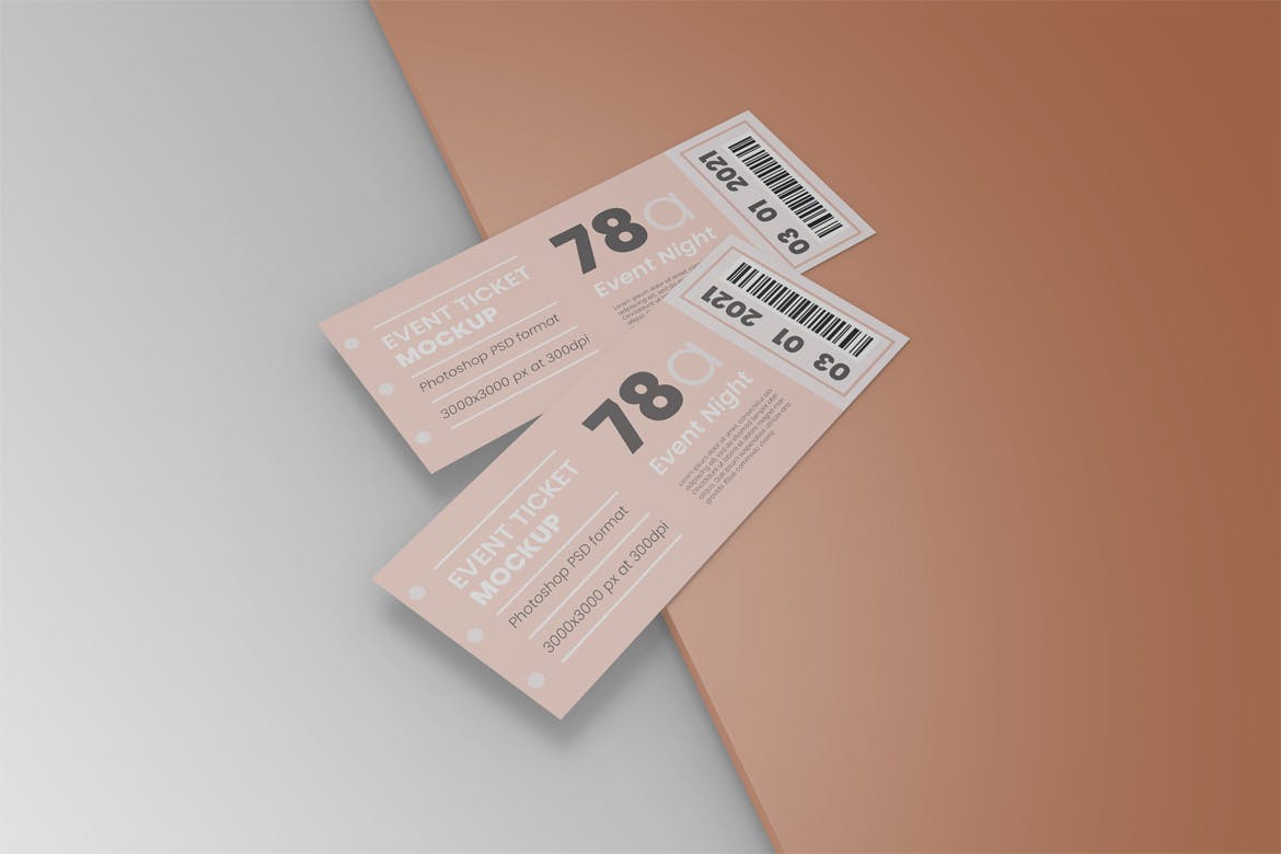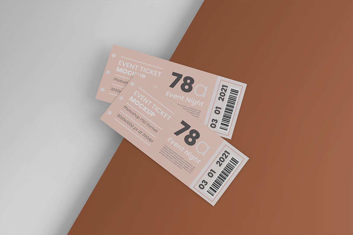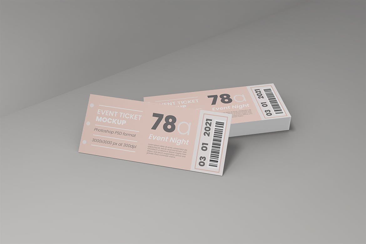 易于编辑的活动门票/入场券设计样机模板。 它包含创建项目逼真的外观所需的一切。保证明亮和深色设计的美观,并与形状完美契合。 易于浏览,描述良好的图层。