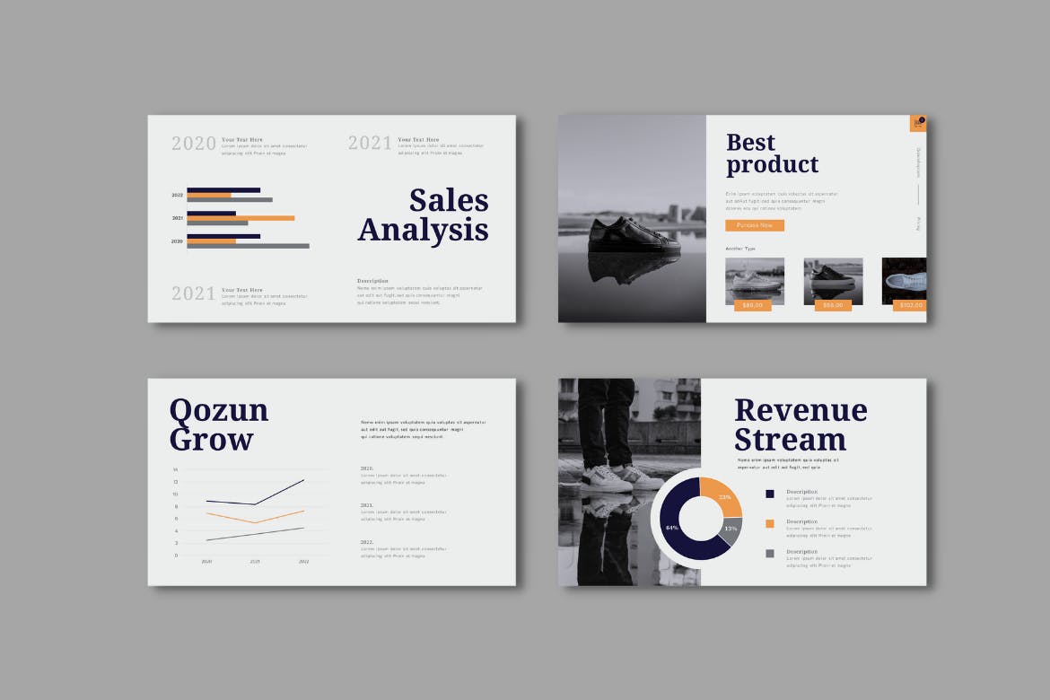 Qozun Powerpoint Pitch Deck演示文稿模板是一个设计精美、功能强大的Powerpoint Pitch Deck演示文稿。此模板提供了非常漂亮的布局设计和视觉设计,使您更容易使用。