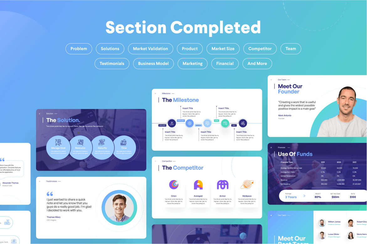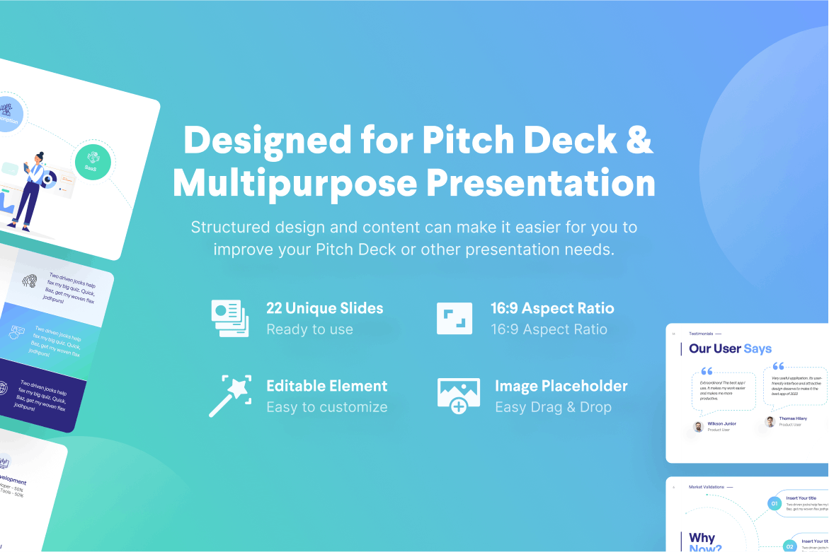 **Bizdeck-Business Pitch Deck Presentation Templates**是一款现代、简洁、易用的模板,对于任何初创企业的创业者、任何专业人士、学术界人士或想要展示其精彩项目或创意的商人来说,这都是一款理想的业务组合演示。本演示文稿包括内容现代而简单的幻灯片。无需使用任何其他软件,只需使用PowerPoint,即可导出到谷歌幻灯片。它是完全可配置的,所有形状都可以调整大小,而不会失去质量,可拆卸和可编辑。