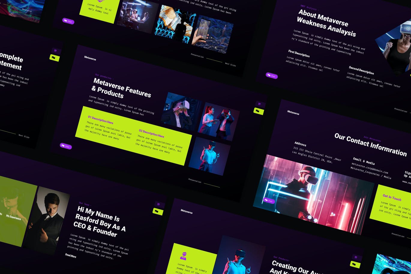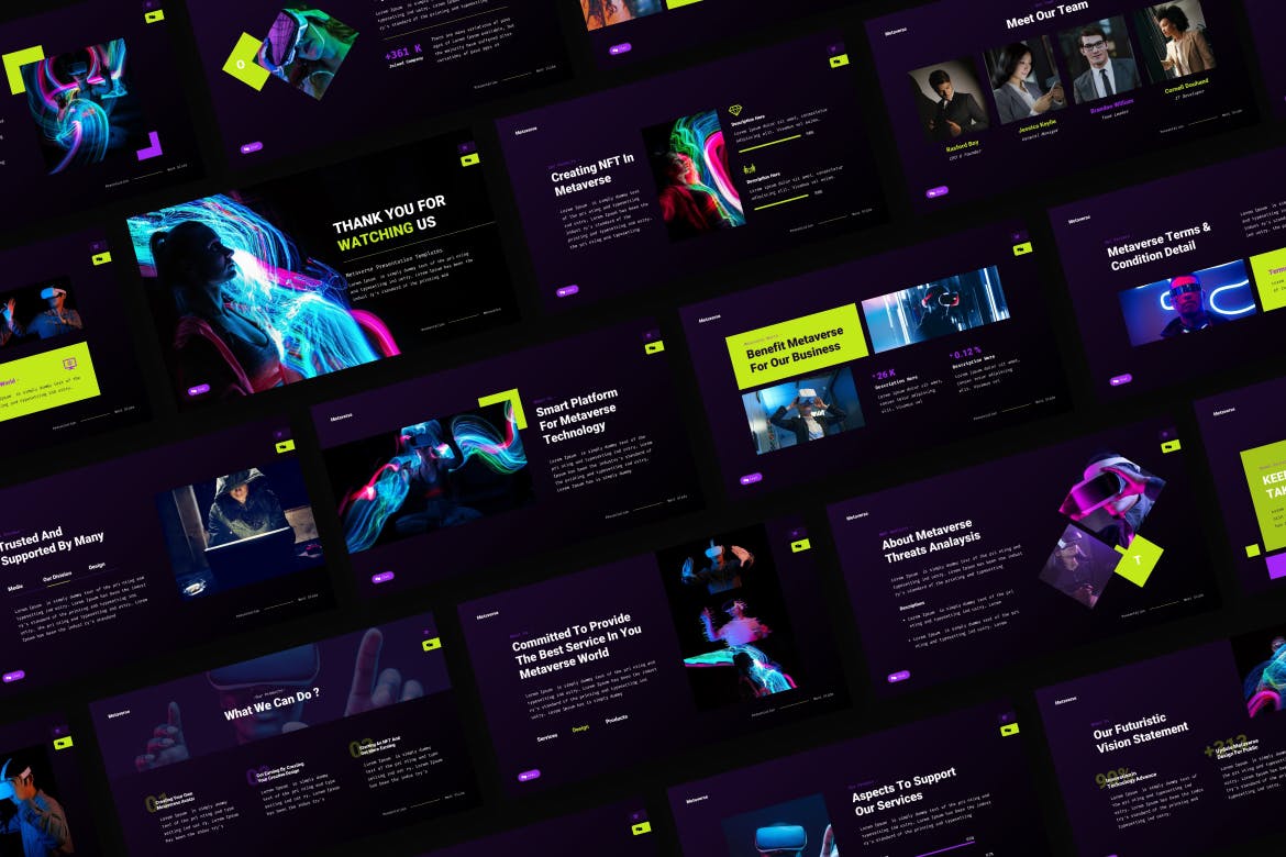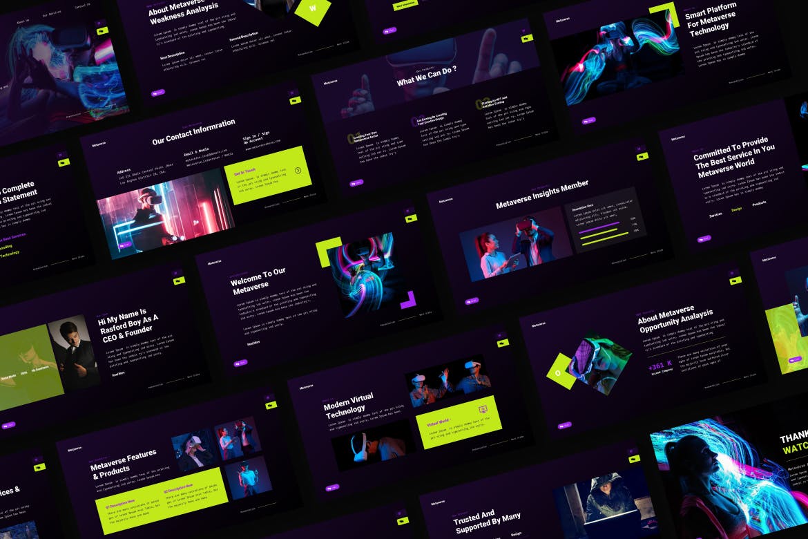 Metaverse Powerpoint演示文稿模板,用于您的公司简介、营销和多用途业务