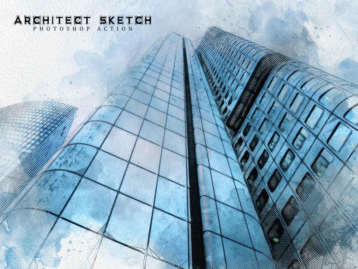 建筑师素描艺术Photoshop样式,把你的照片变成杰作。点击几下就能得到详细的架构师草图。易于定制和改进。使用此操作可以节省工作时间。