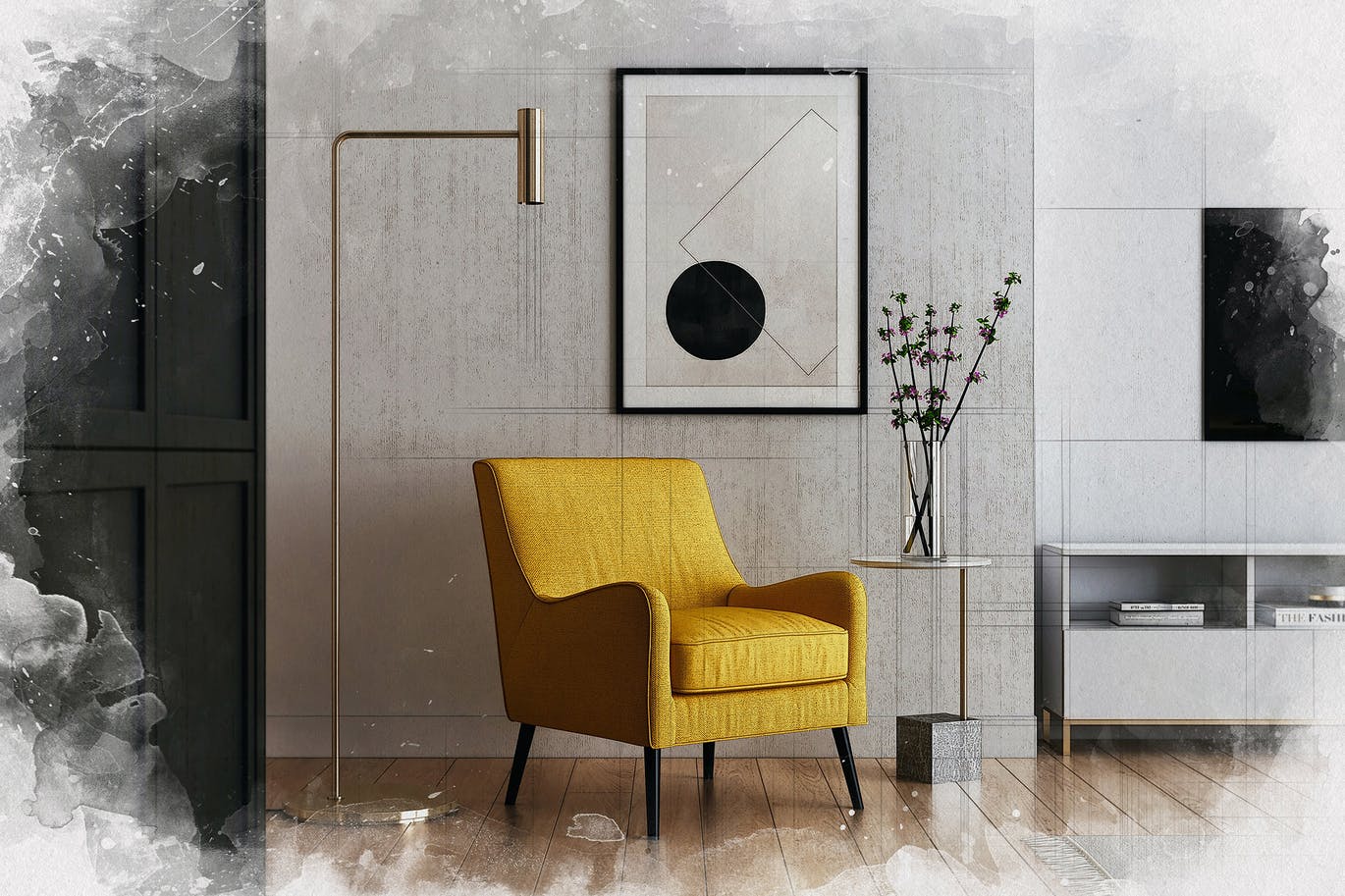 这次老不湿分享的是,时尚逼真质感的市内手绘素描水彩效果图层样式,拥有Photoshop动作或效果,为您制定室内设计计划,真是太了不起了!不幸的是,没有神经网络可以做到这一点。为了使您感到舒适,我们可以提供这种Photoshop效果,使任何风景照或图像看起来像专业设计师绘制的一样。