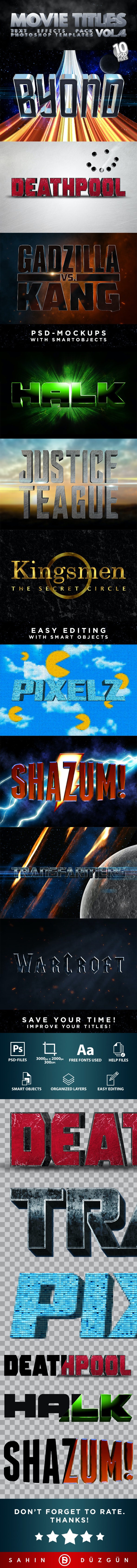 这个动态的模板程序包包含十种不同类型的大片电影标题处理的样机。您可以在Web或打印对象上使用的终极附加组件。从创建徽标或网络横幅,到设计动态传单或海报,只需轻松编辑这些模型模板,您就可以为您的项目提供所需的电影氛围!