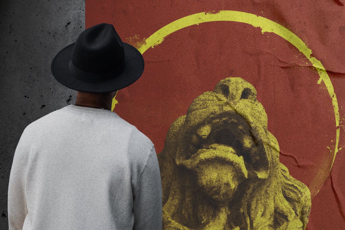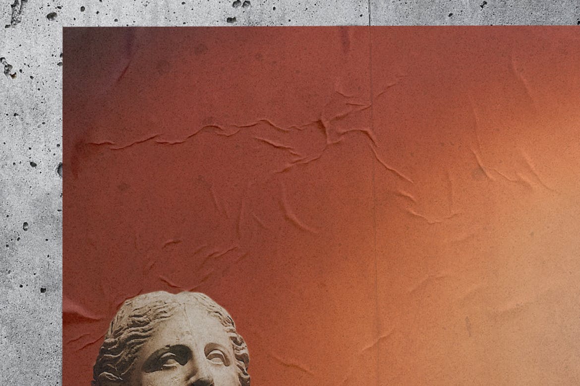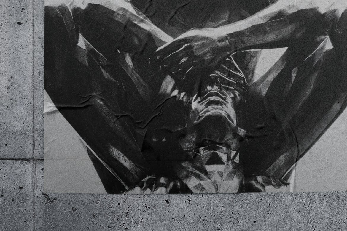 石墙艺术海报作品展示样机,海报尺寸为3000x4247px,智能对象图层(只需双击图层、放置设计并保存),高分辨率 6000x4000px,300 dpi,所有对象和阴影单独分开,所有样机和物品都可以移动创建自己独特的场景。