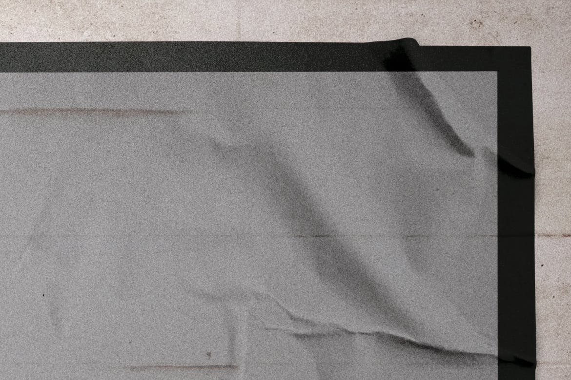 城市墙体皱巴巴的海报样机,海报尺寸为3000x4247px,智能对象图层(只需双击图层、放置设计并保存),高分辨率 6000x4000px,300 dpi,所有对象和阴影单独分开,所有样机和物品都可以移动创建自己独特的场景。