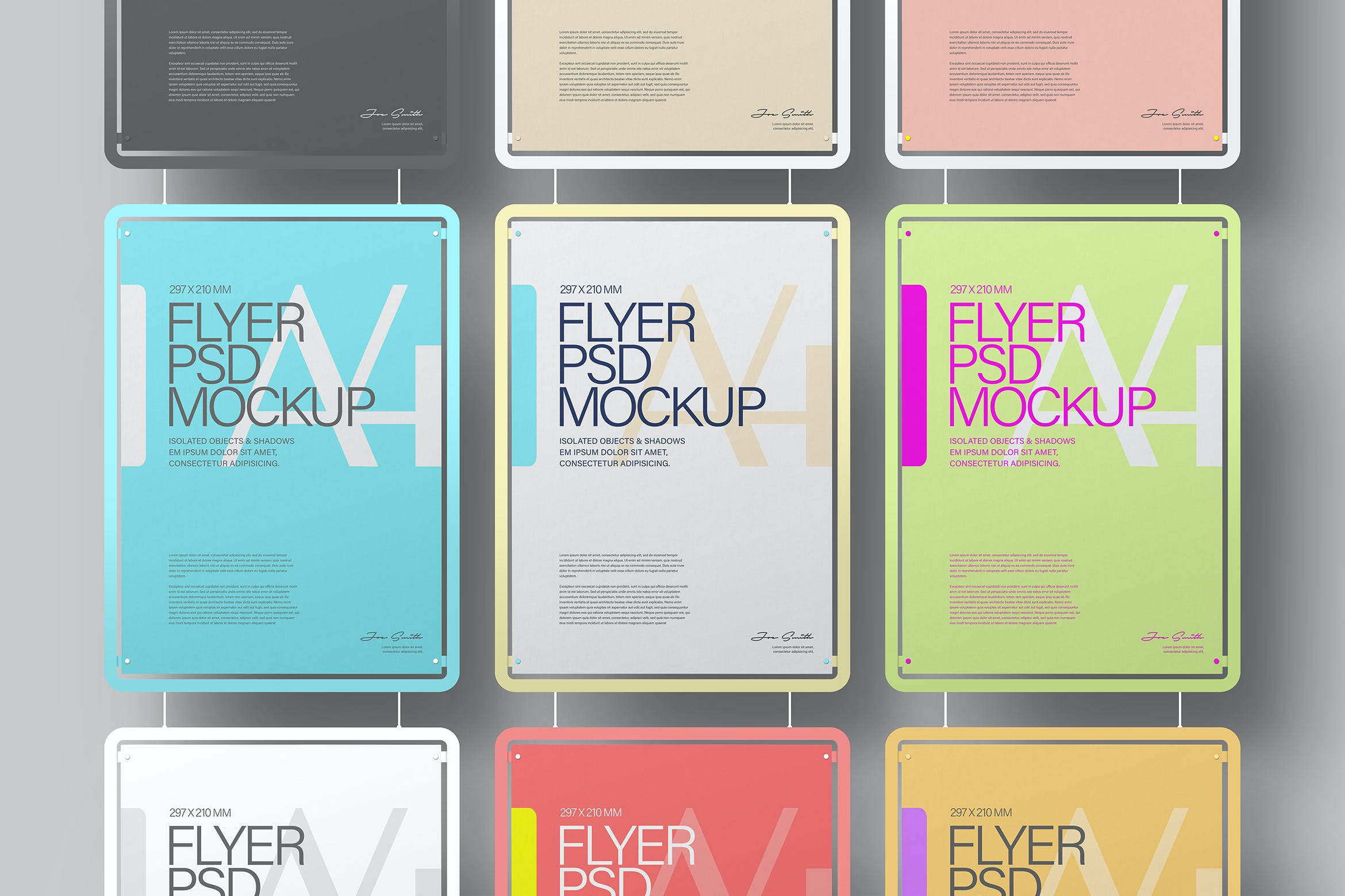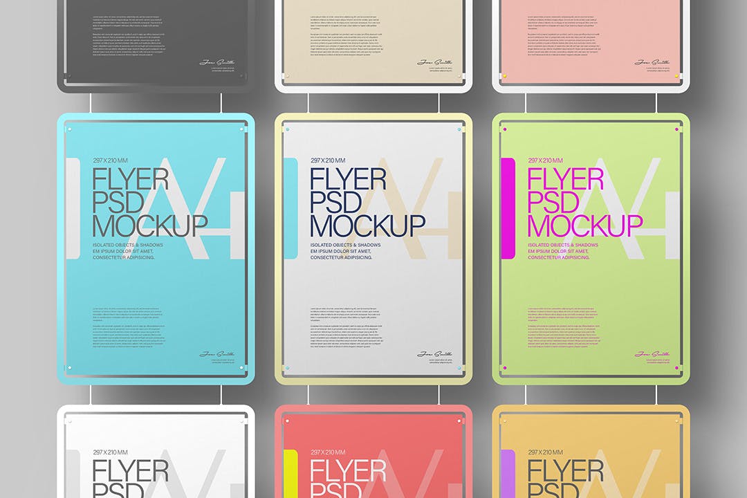 吊挂单色框架A4尺寸传单海报样机,将帮助您改善演示文稿或任何其他项目。在这里您可以找到高质量的图像,以高分辨率拍摄。所有对象、灯光和阴影都单独分开。通过智能对象可以轻松编辑样机。非常适合印刷和Web设计。分开的对象;分离的光影层;多变的背景;使用智能对象放置您自己的图像。
