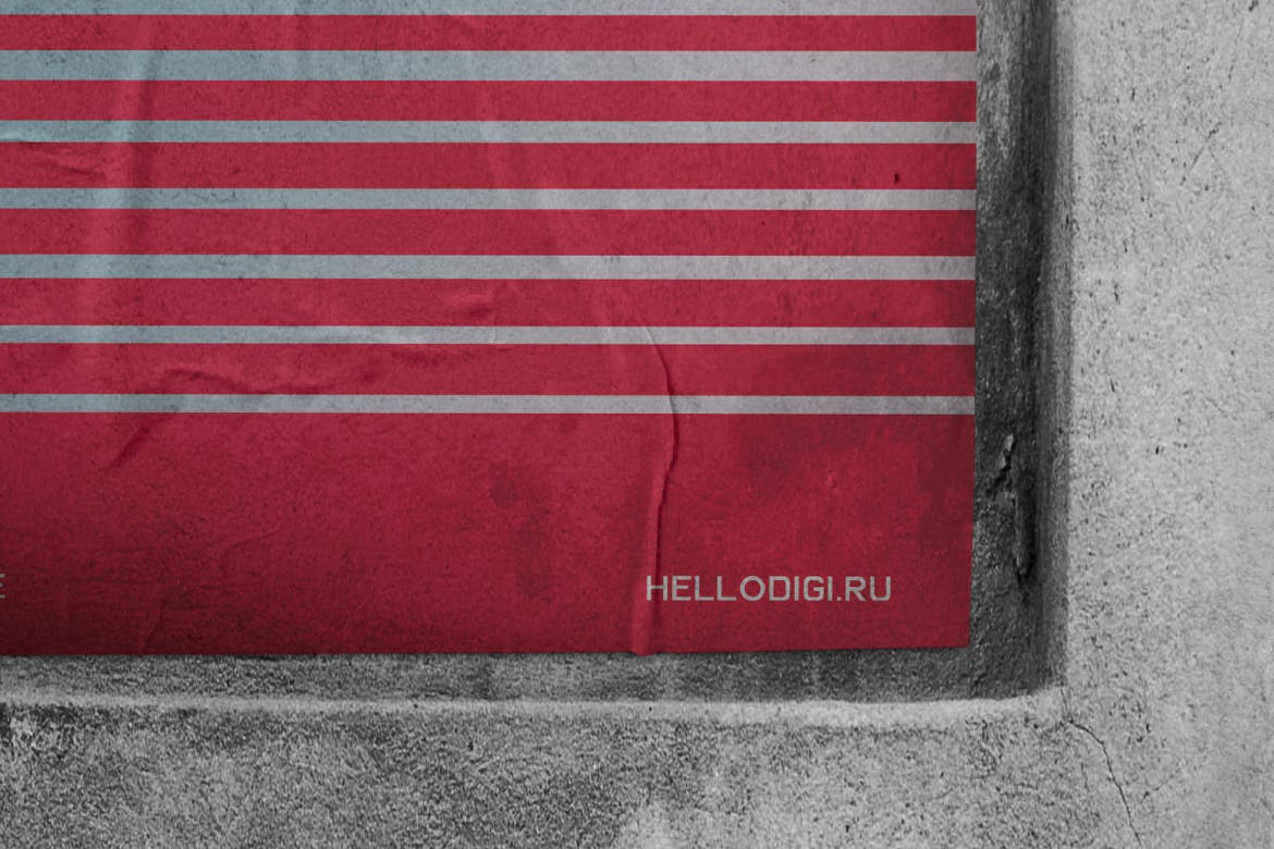 石墙旧海报展示样机,海报尺寸为3000x4247px,智能对象图层(只需双击图层、放置设计并保存),高分辨率 6000x4000px,300 dpi,所有对象和阴影单独分开,所有样机和物品都可以移动创建自己独特的场景。