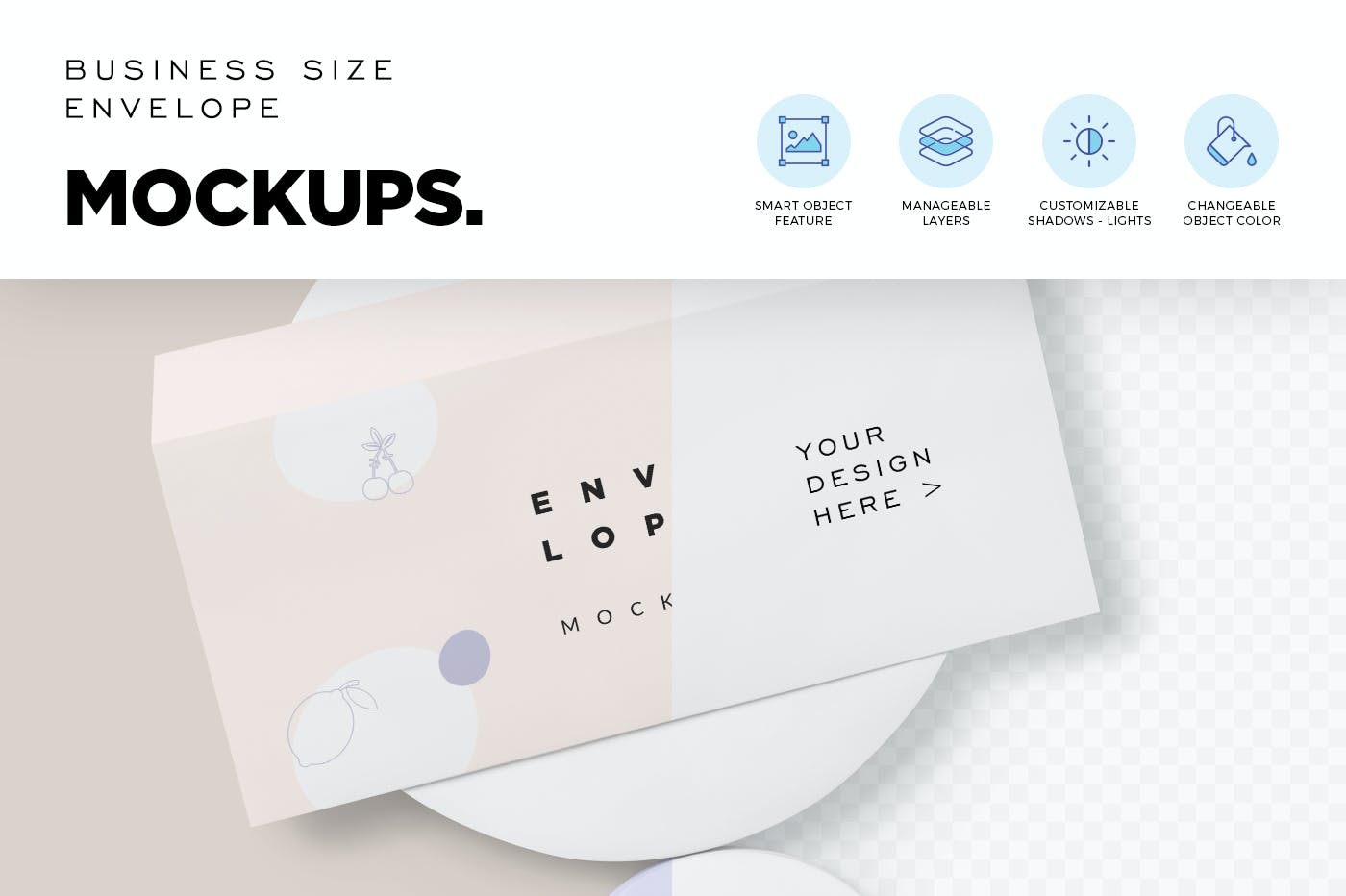 这些漂亮的商业尺寸信封样机将帮助您以独特的方式展示您的办公文具品牌设计。 具有智能对象选项,只需单击一下即可帮助您添加设计。 这些模型还提供智能图层来自定义阴影、效果和背景。