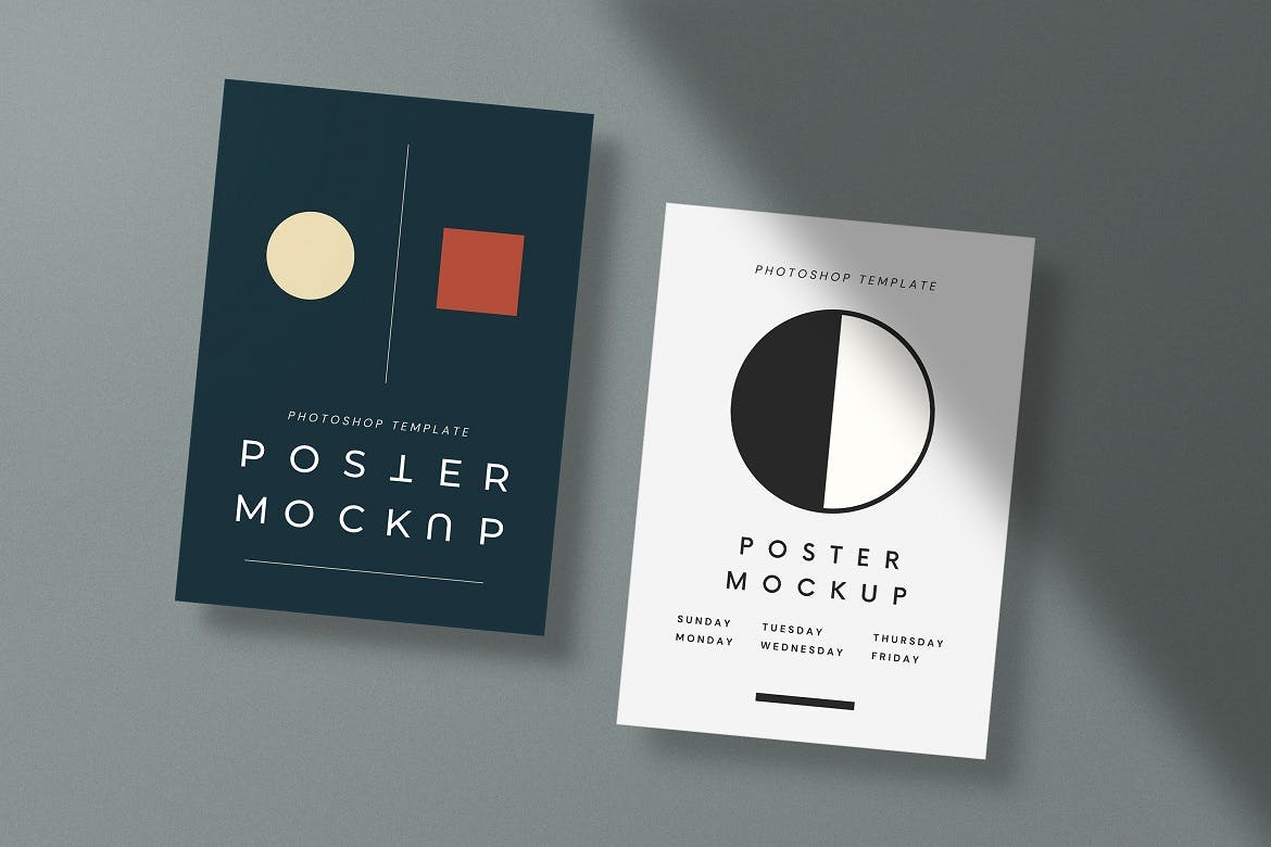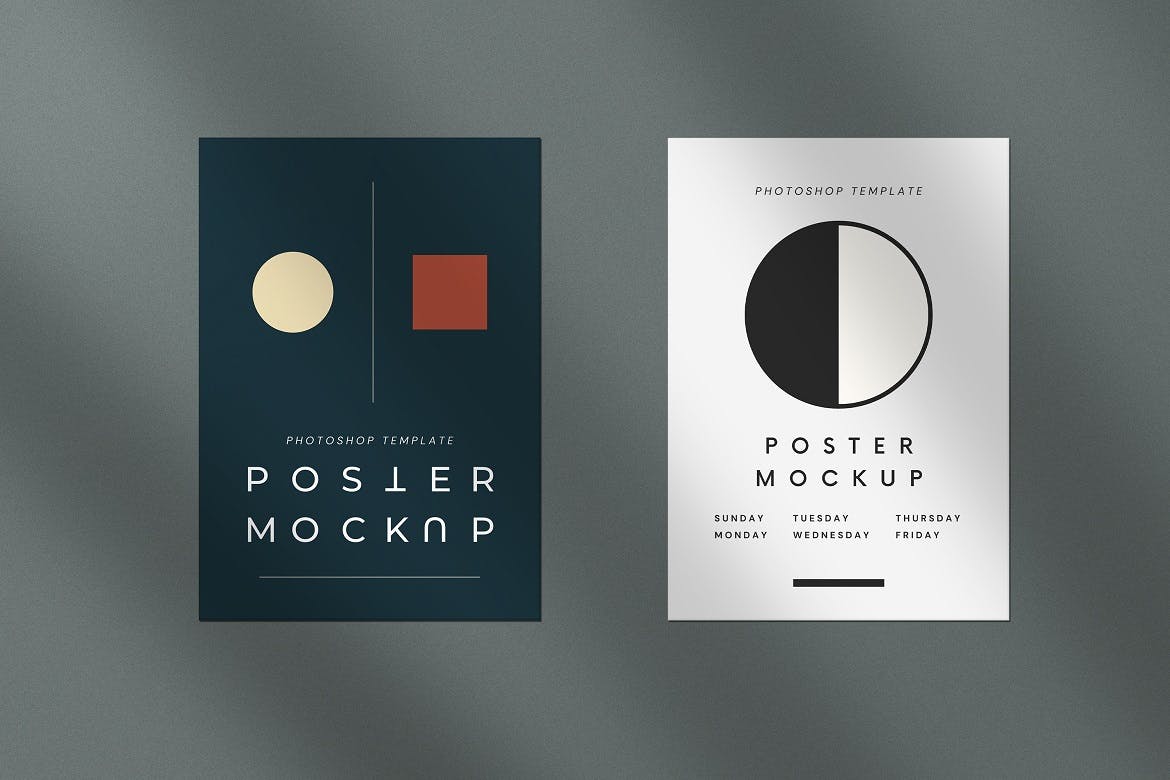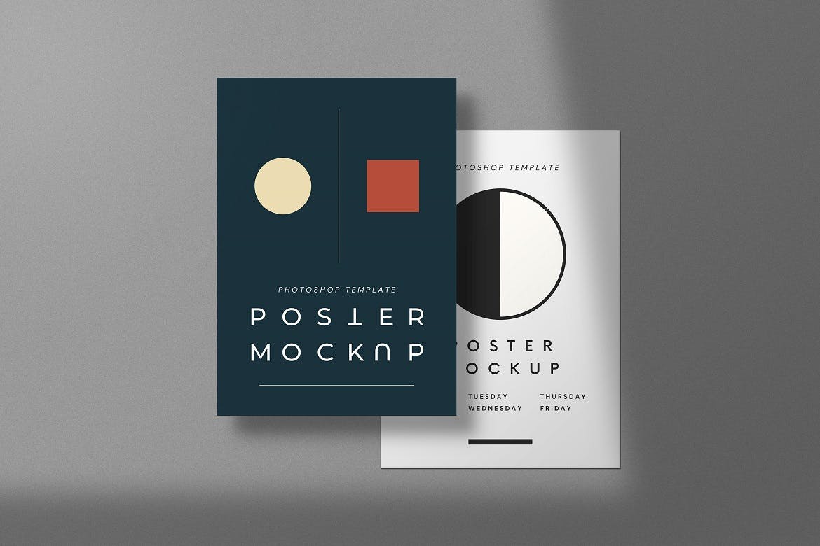 极简风格海报展示样机, 将帮助您以最佳方式展示您的作品。 分辨率为3000x2000px, 在一秒钟内创建一个整洁的演示文稿。 只需打开 psd 文件并将您的设计放置到智能对象层点击保存即可。背景纹理选项和可编辑的背景颜色。